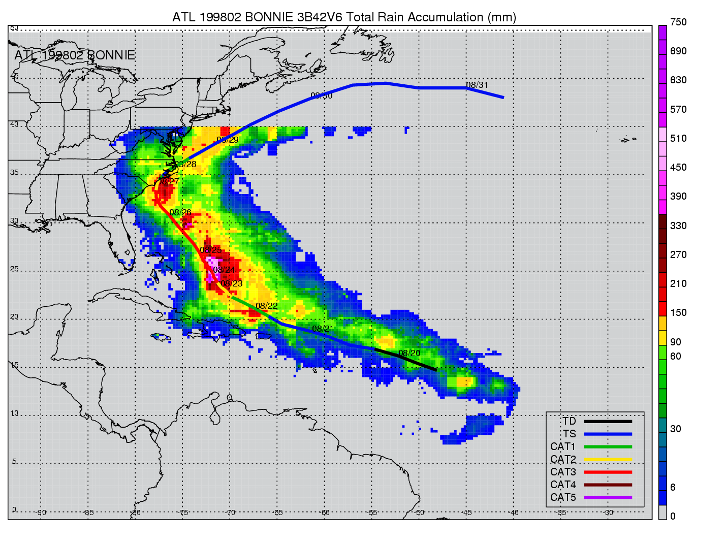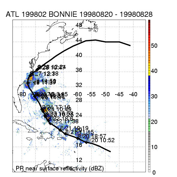 | 2 | 199802 | BONNIE | 19980820 - 19980828 | 954 | 100 | 21 | 109 | snapshots | rain accumulation |