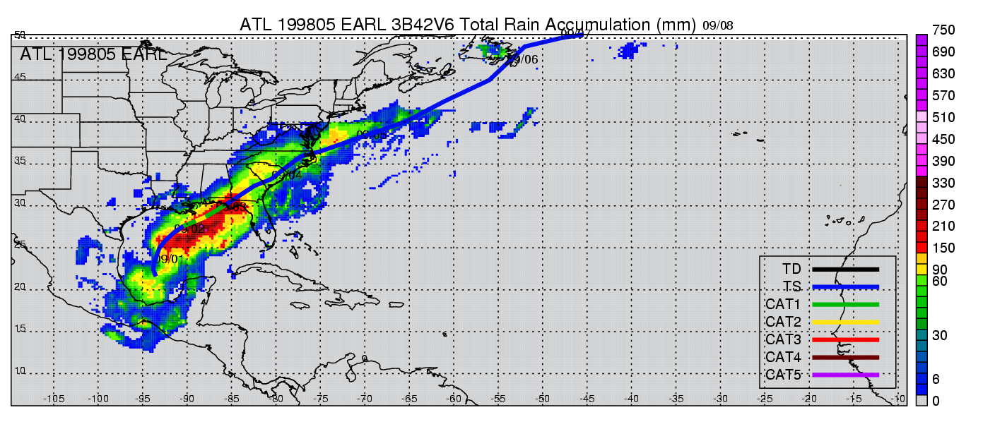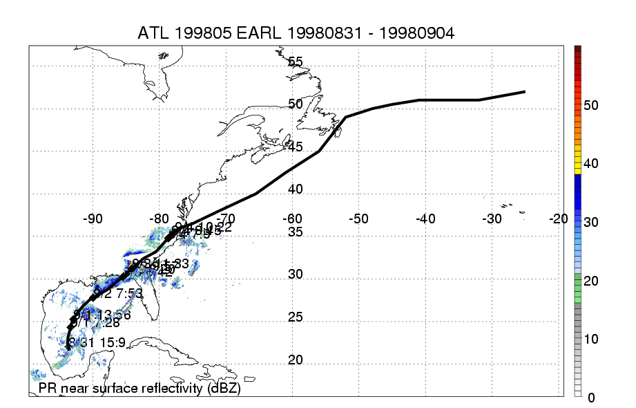 | 5 | 199805 | EARL | 19980831 - 19980904 | 964 | 85 | 11 | 93 | snapshots | rain accumulation |