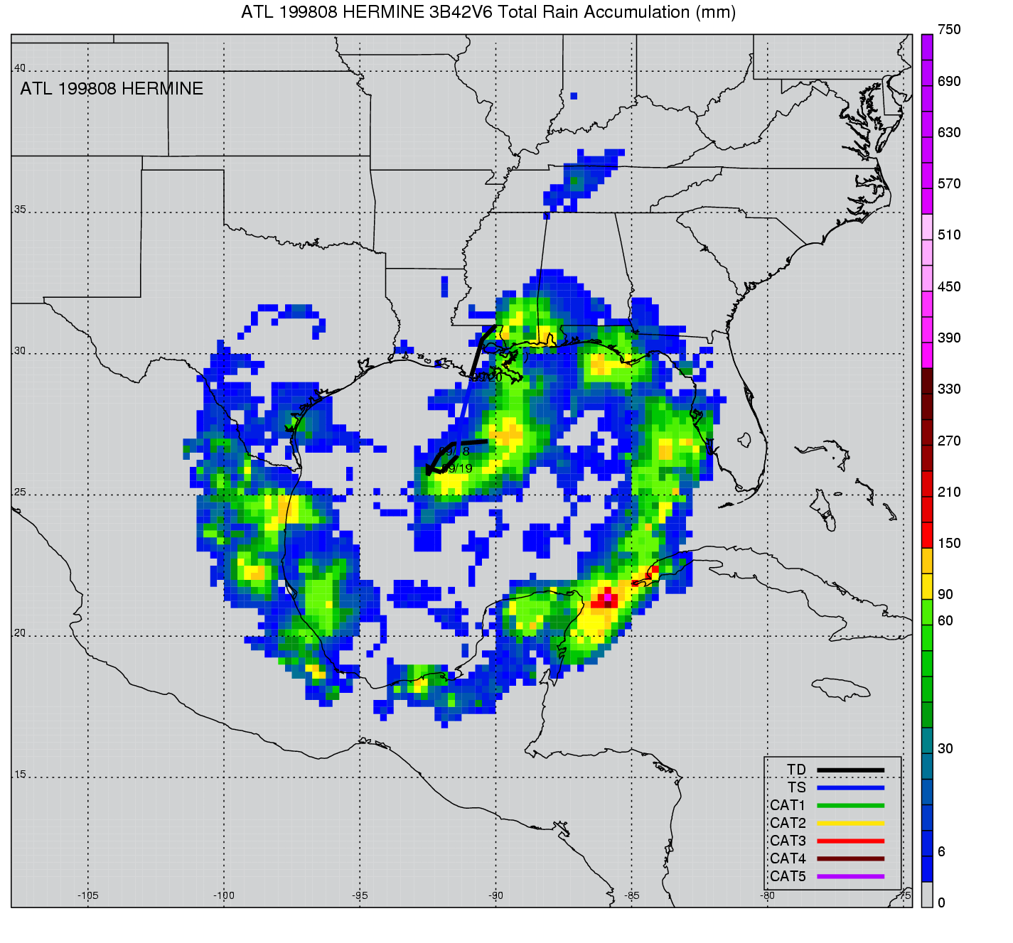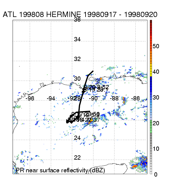 | 8 | 199808 | HERMINE | 19980917 - 19980920 | 999 | 40 | 7 | 46 | snapshots | rain accumulation |