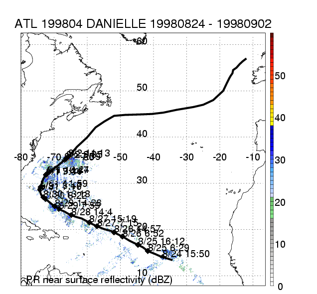 | 4 | 199804 | DANIELLE | 19980824 - 19980902 | 960 | 90 | 23 | 164 | snapshots | rain accumulation |