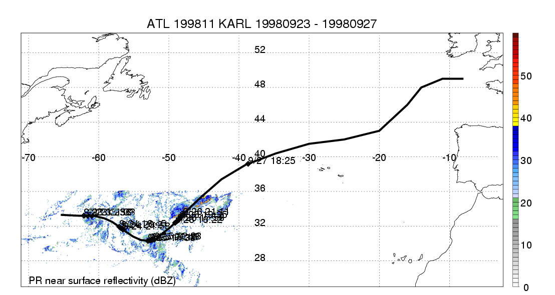 | 11 | 199811 | KARL | 19980923 - 19980927 | 970 | 90 | 16 | 182 | snapshots | rain accumulation |