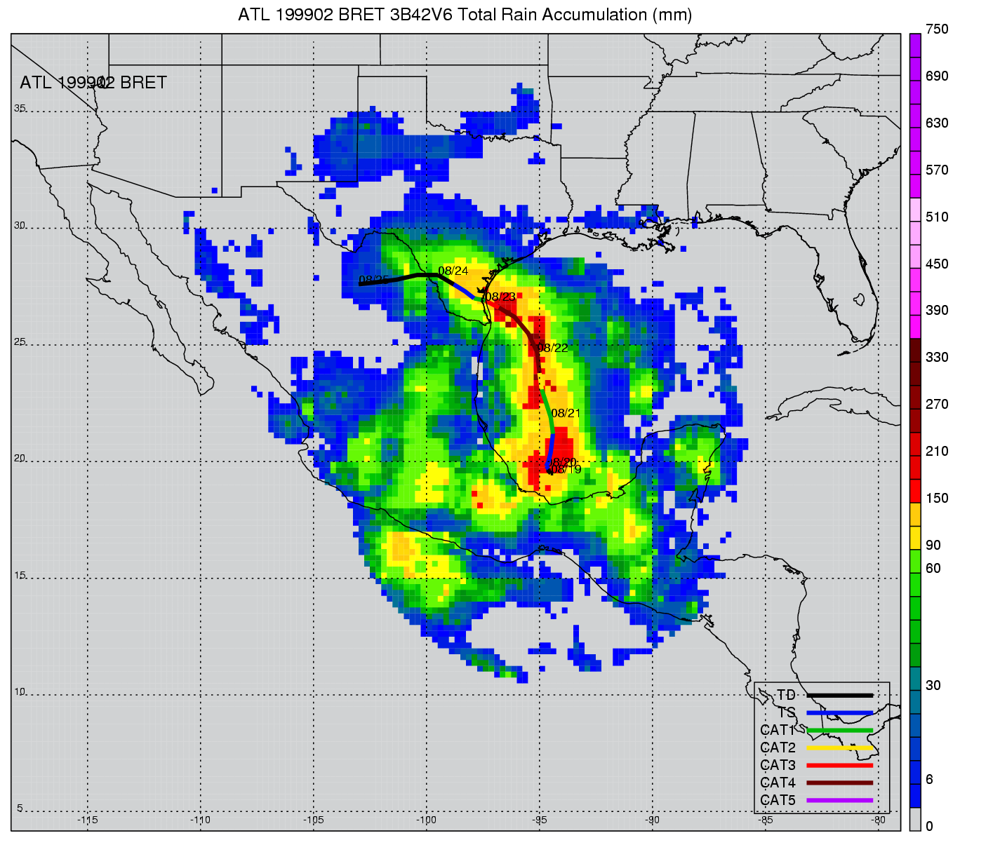 | 7 | 199907 | GERT | 19990911 - 19990922 | 930 | 130 | 25 | 182 | snapshots | rain accumulation |