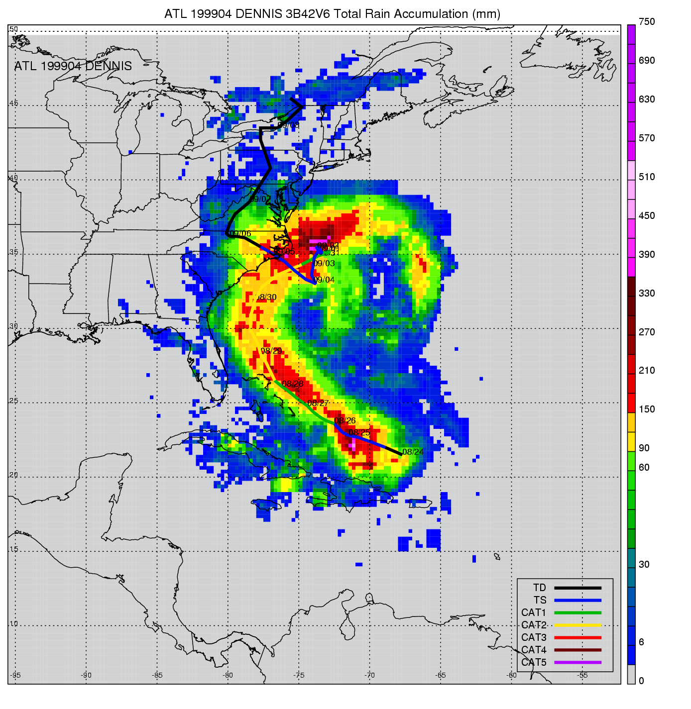 | 4 | 199904 | DENNIS | 19990824 - 19990906 | 962 | 90 | 37 | 305 | snapshots | rain accumulation |