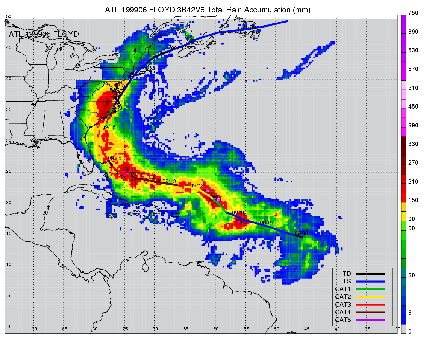 | 6 | 199906 | FLOYD | 19990908 - 19990916 | 921 | 135 | 21 | 152 | snapshots | rain accumulation |