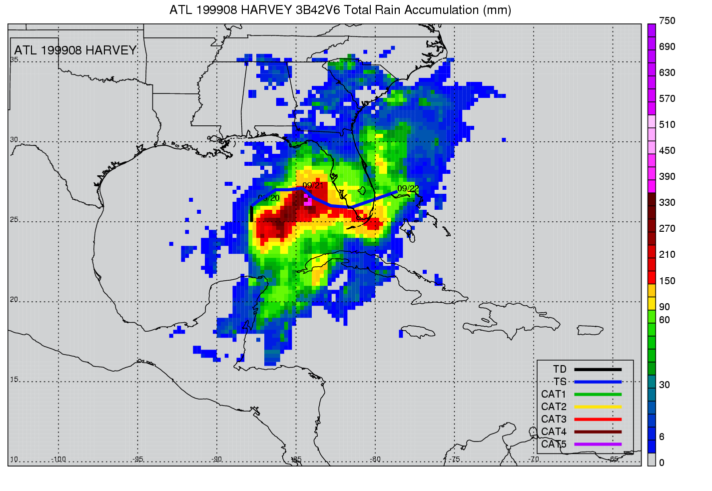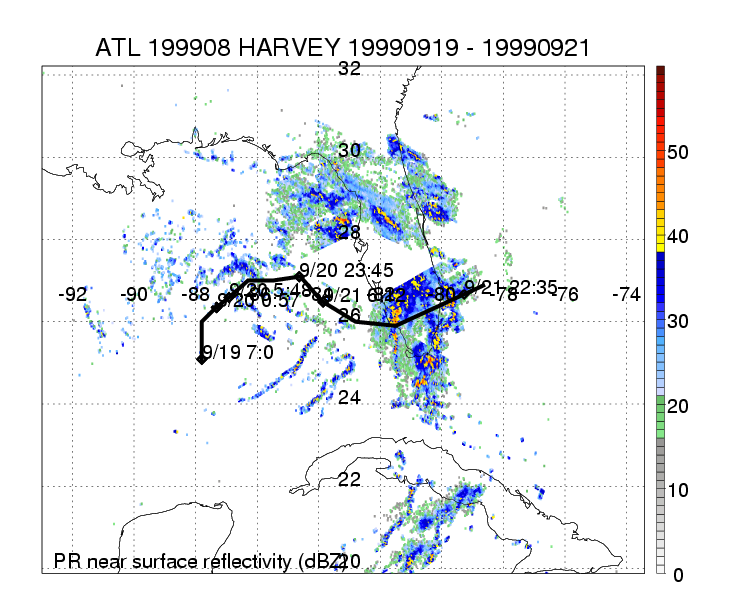 | 8 | 199908 | HARVEY | 19990919 - 19990921 | 995 | 50 | 7 | 60 | snapshots | rain accumulation |