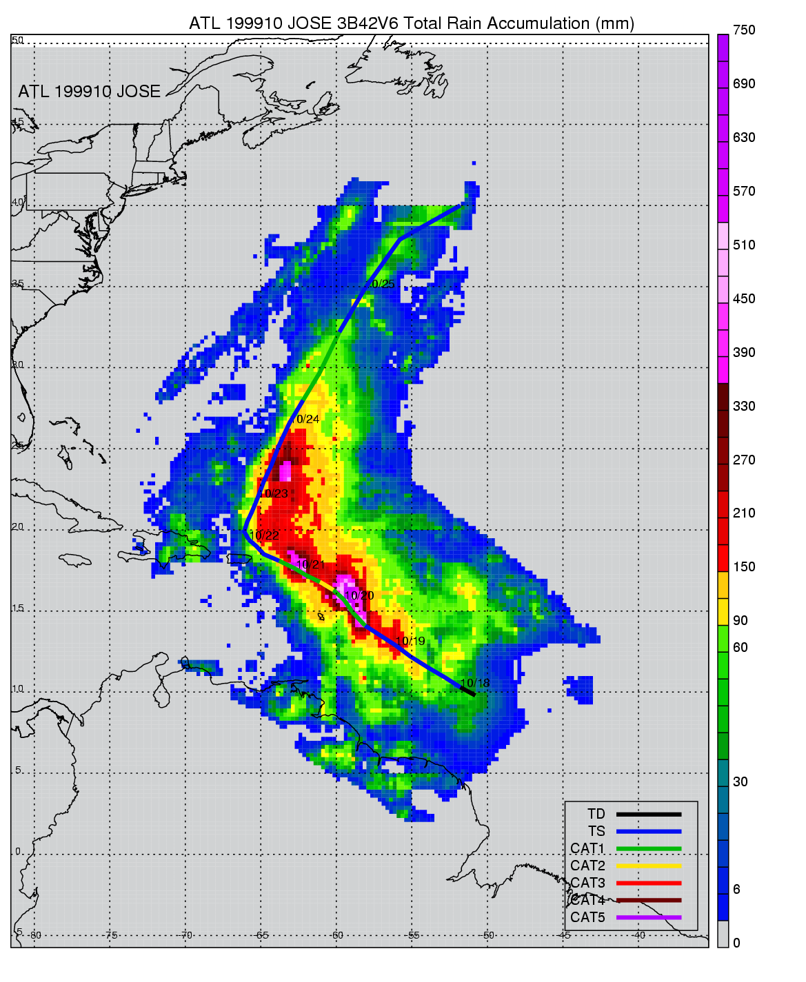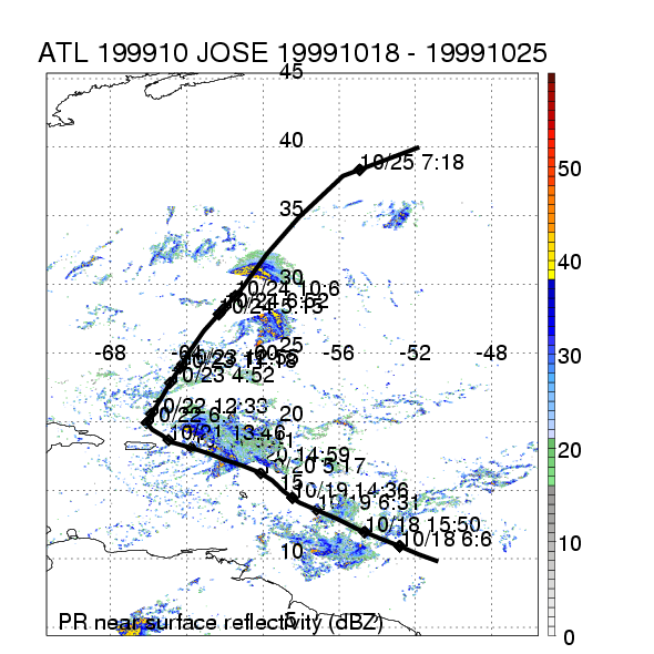 | 10 | 199910 | JOSE | 19991018 - 19991025 | 979 | 85 | 18 | 120 | snapshots | rain accumulation |