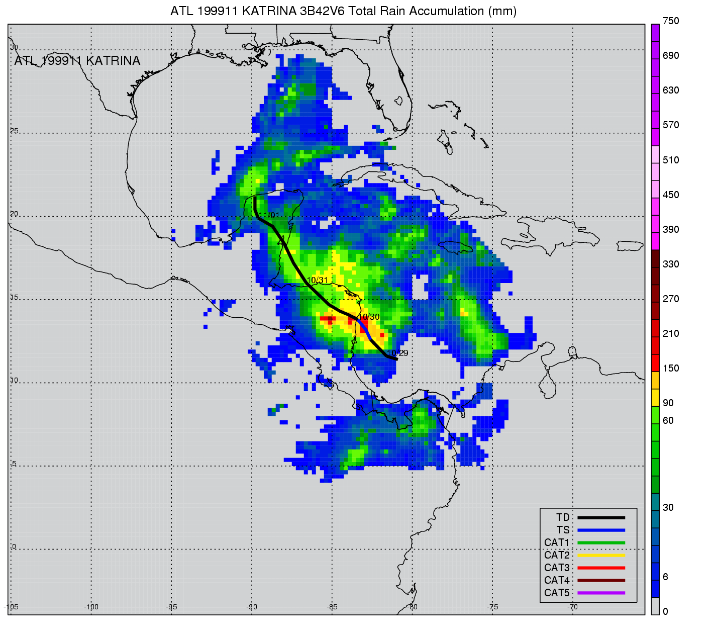 | 11 | 199911 | KATRINA | 19991029 - 19991101 | 999 | 35 | 7 | 37 | snapshots | rain accumulation |