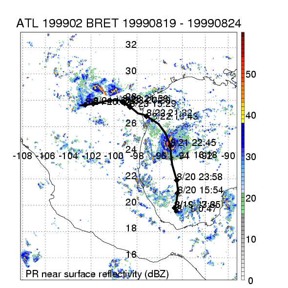 | 2 | 199902 | BRET | 19990819 - 19990824 | 944 | 125 | 14 | 114 | snapshots | rain accumulation |