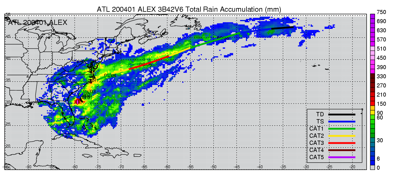| 1 | 200401 | ALEX | 20040801 - 20040805 | 957 | 105 | 16 | 109 | snapshots | rain accumulation |