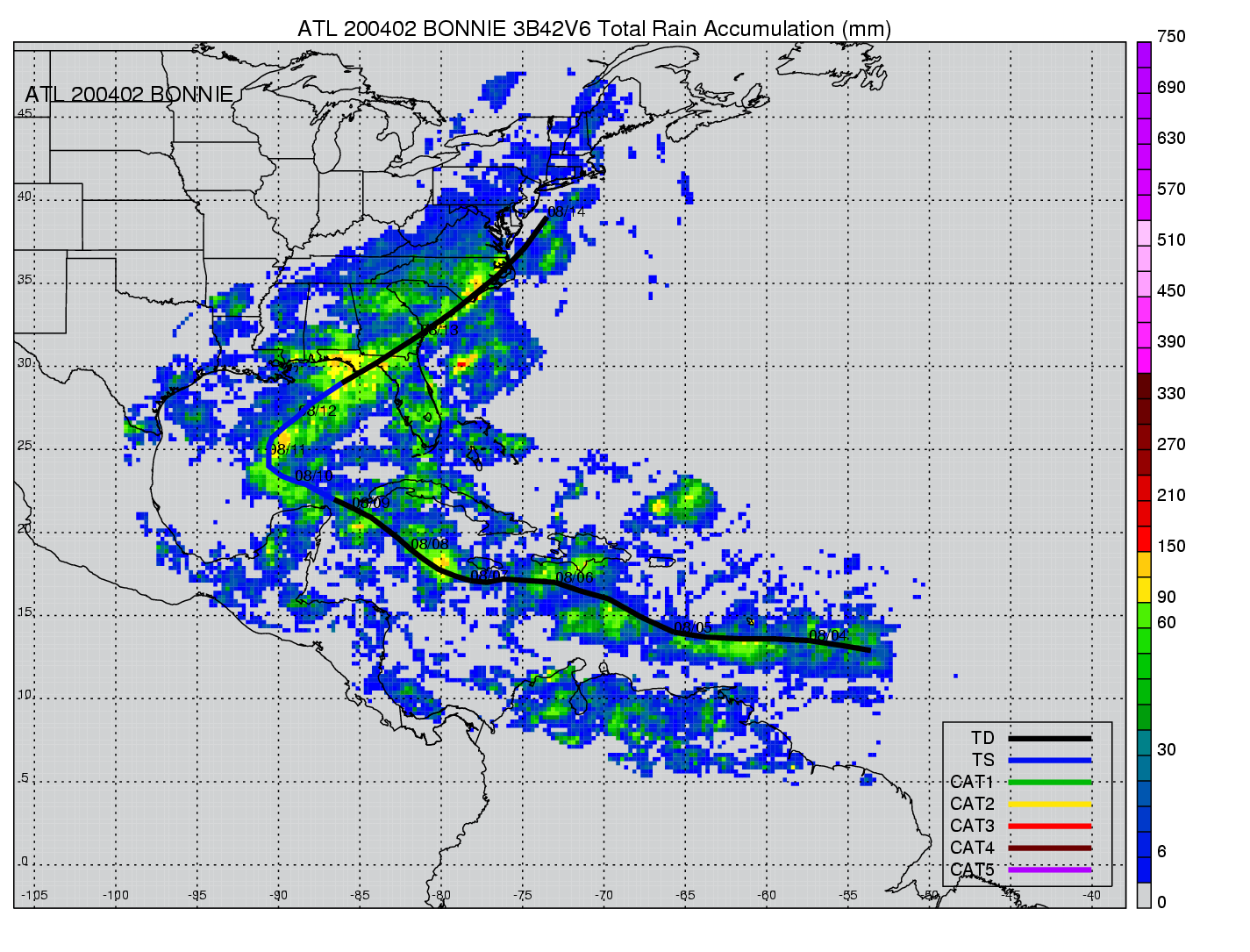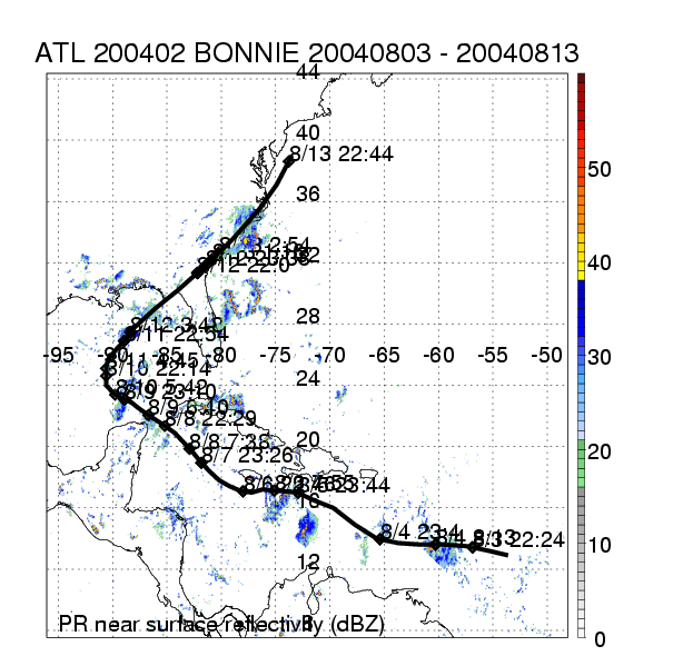 | 2 | 200402 | BONNIE | 20040803 - 20040813 | 1001 | 55 | 23 | 156 | snapshots | rain accumulation |