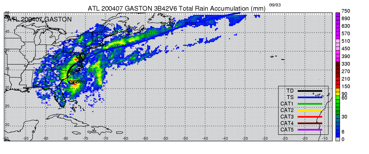 | 7 | 200407 | GASTON | 20040827 - 20040831 | 986 | 65 | 15 | 128 | snapshots | rain accumulation |
