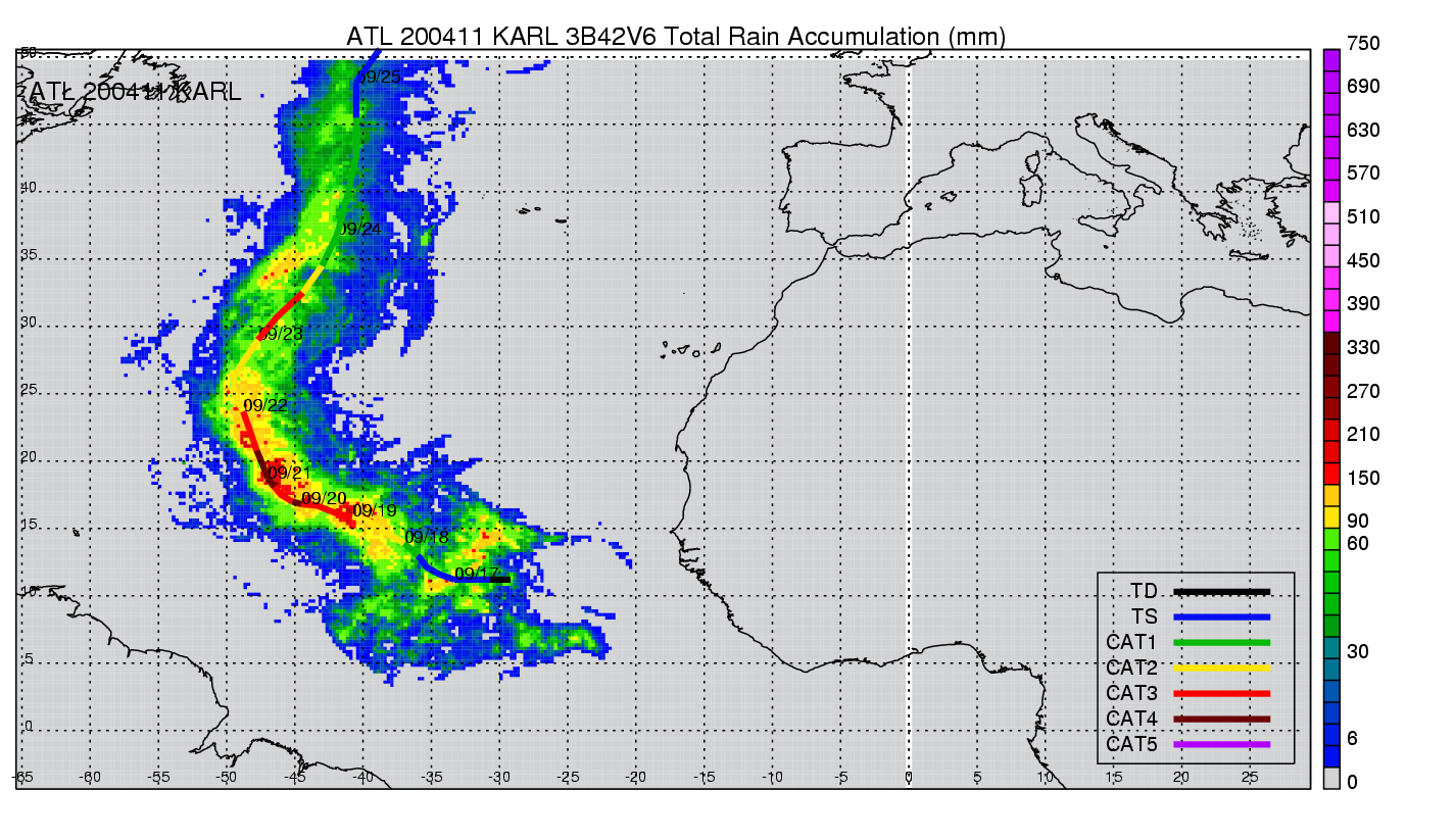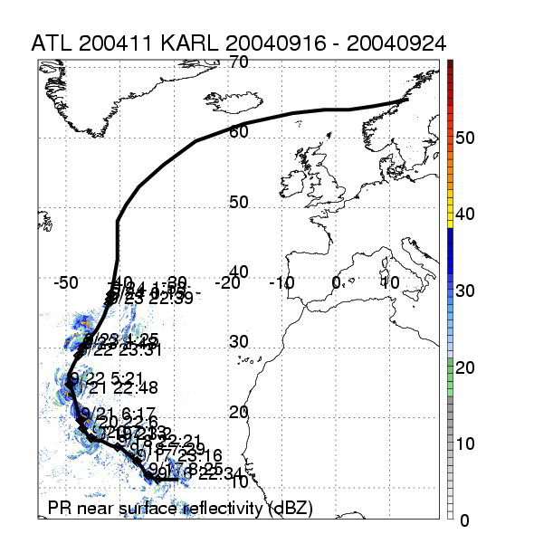 | 11 | 200411 | KARL | 20040916 - 20040924 | 938 | 125 | 17 | 155 | snapshots | rain accumulation |