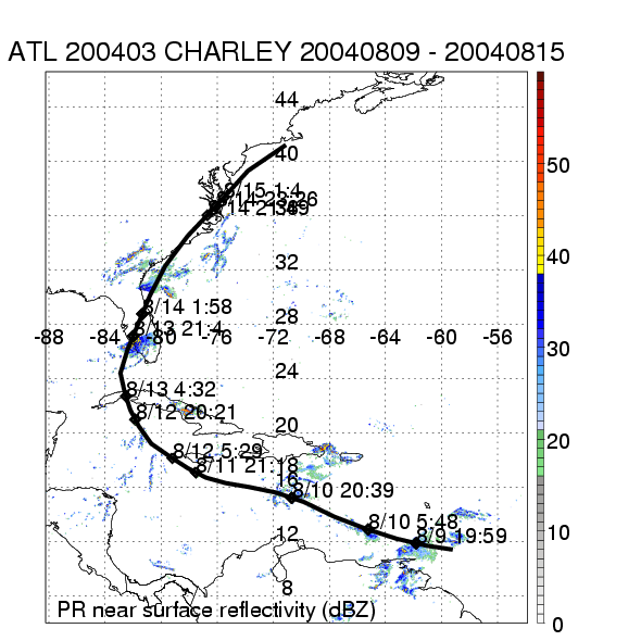 | 3 | 200403 | CHARLEY | 20040809 - 20040815 | 947 | 125 | 12 | 82 | snapshots | rain accumulation |