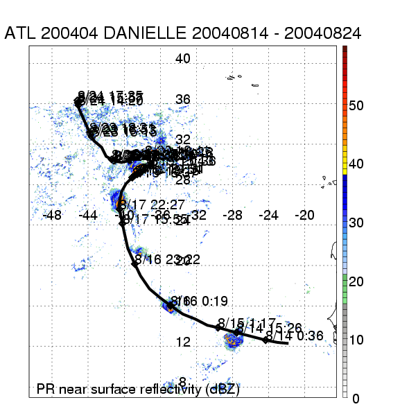 | 4 | 200404 | DANIELLE | 20040814 - 20040824 | 964 | 95 | 33 | 200 | snapshots | rain accumulation |