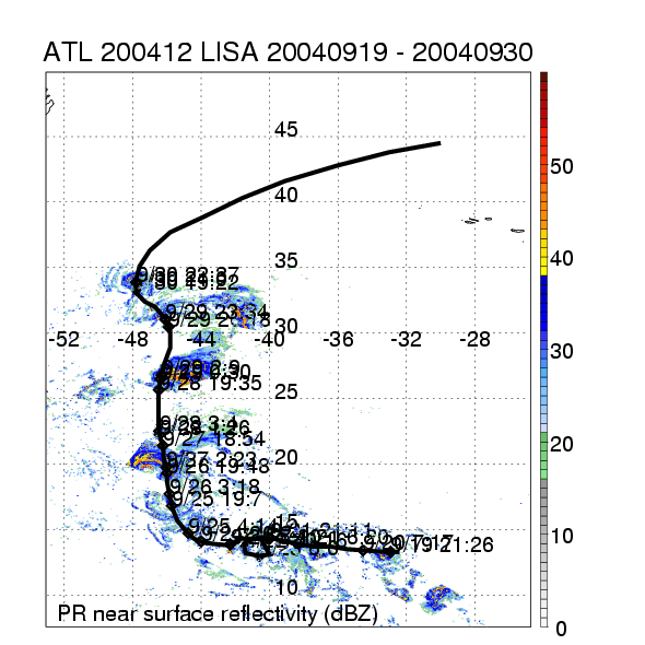 | 12 | 200412 | LISA | 20040919 - 20041001 | 987 | 65 | 27 | 172 | snapshots | rain accumulation |