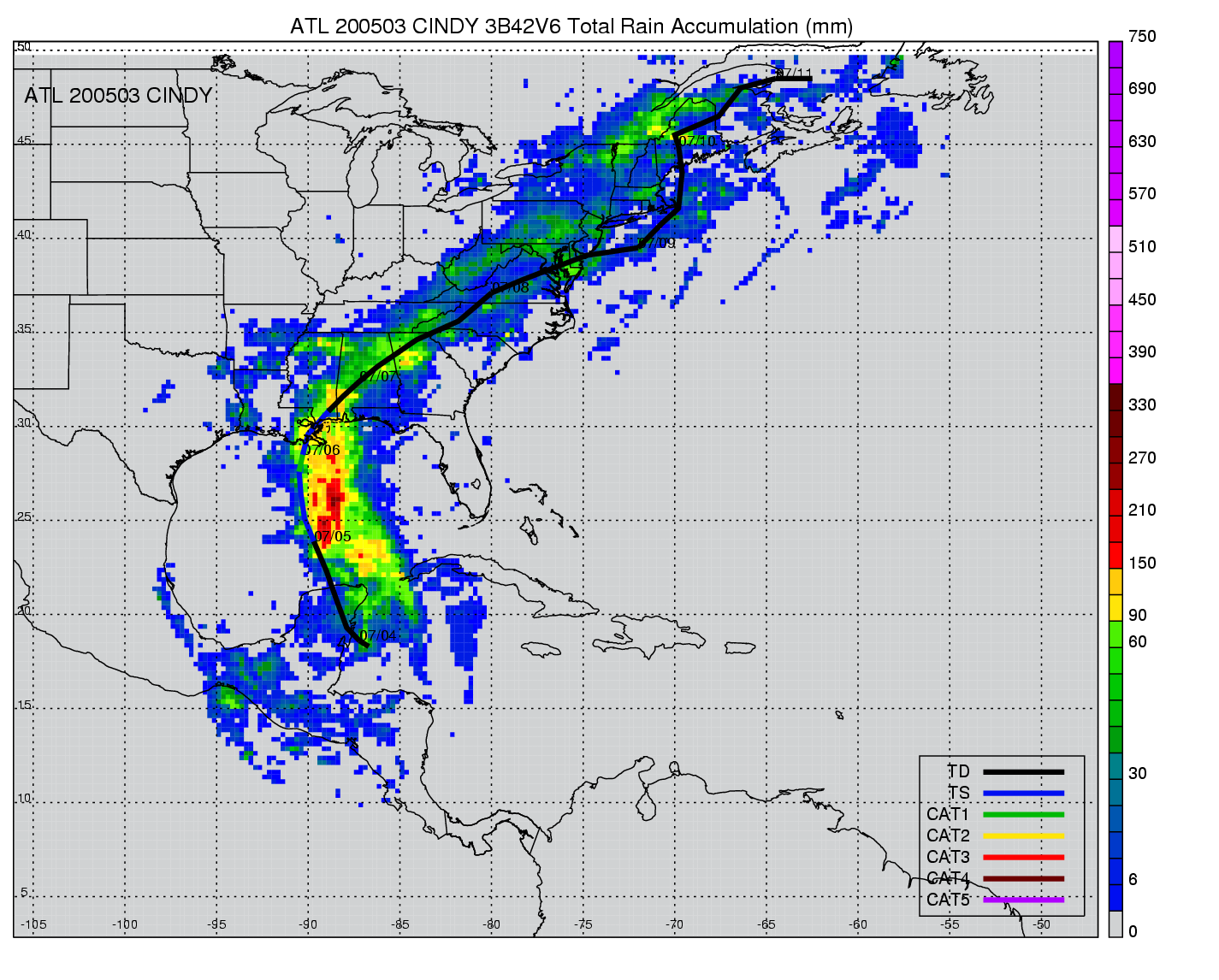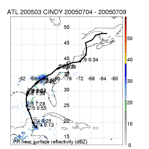 | 3 | 200503 | CINDY | 20050704 - 20050709 | 992 | 65 | 14 | 83 | snapshots | rain accumulation |
