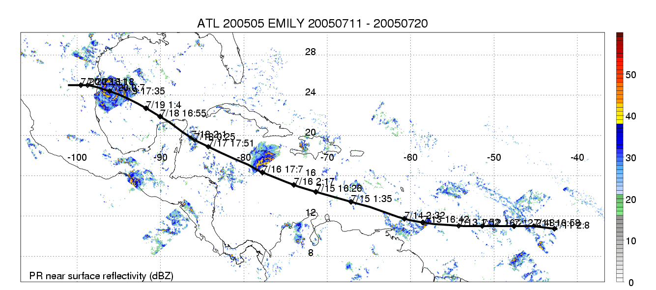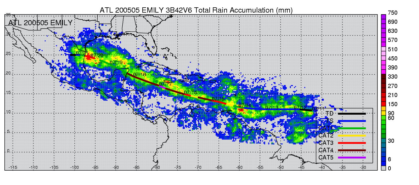 | 5 | 200505 | EMILY | 20050711 - 20050720 | 929 | 140 | 22 | 118 | snapshots | rain accumulation |