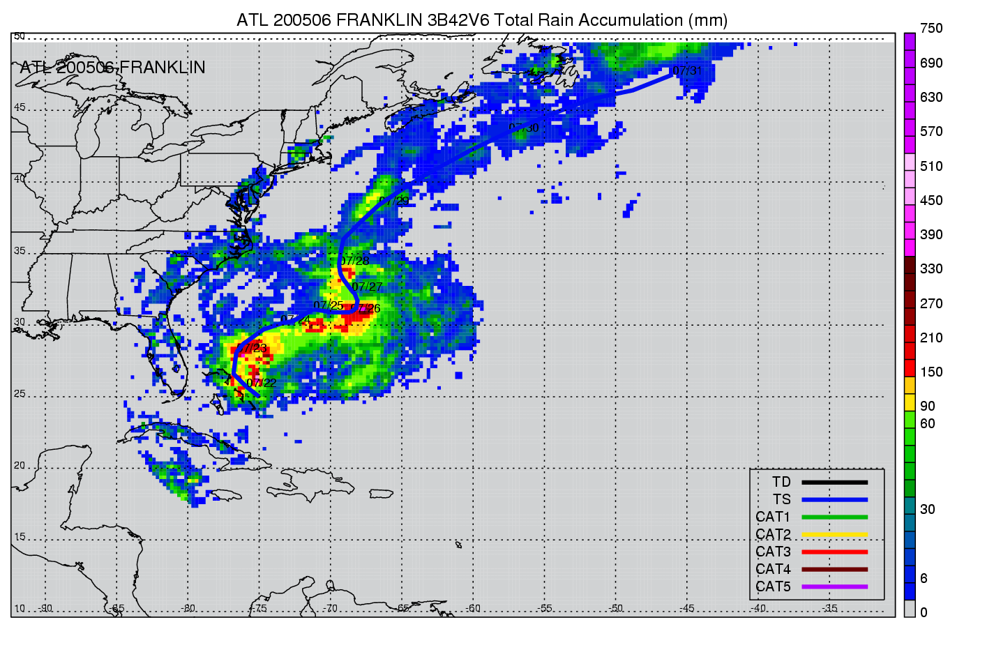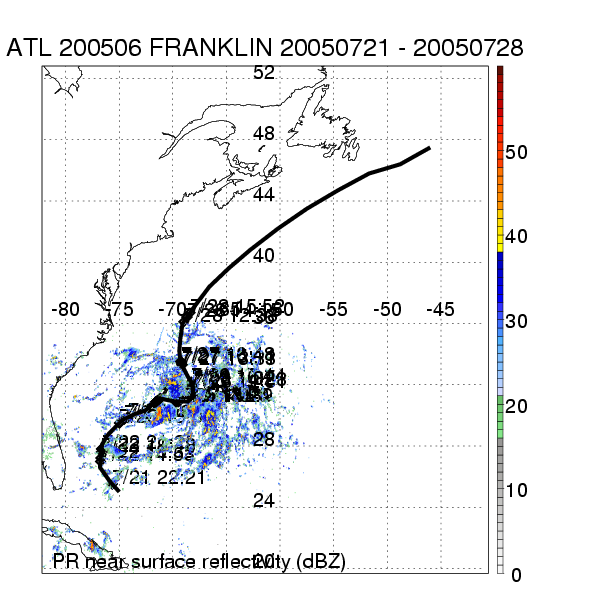 | 6 | 200506 | FRANKLIN | 20050721 - 20050728 | 997 | 60 | 27 | 135 | snapshots | rain accumulation |