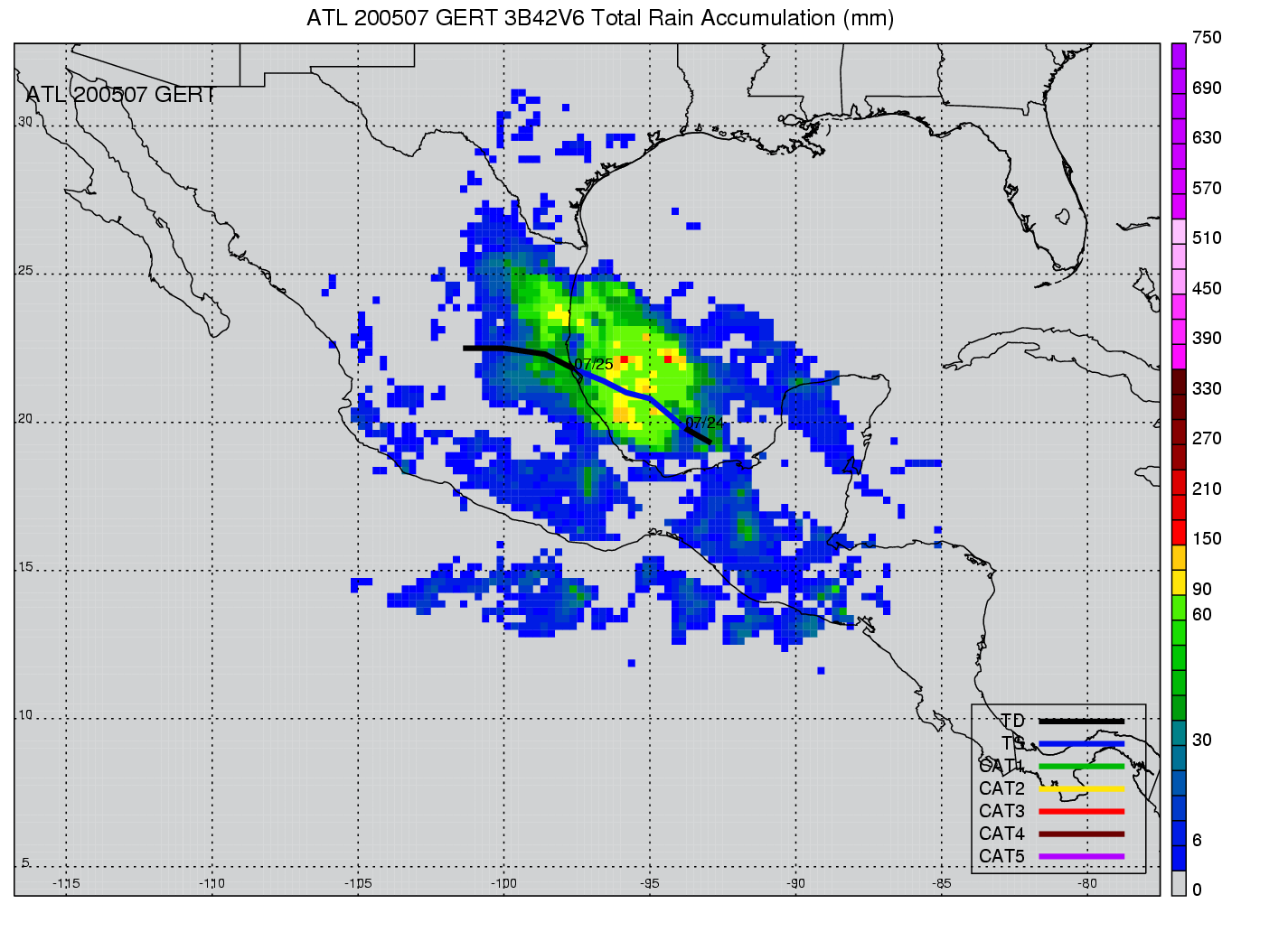 | 7 | 200507 | GERT | 20050723 - 20050725 | 1005 | 40 | 4 | 32 | snapshots | rain accumulation |