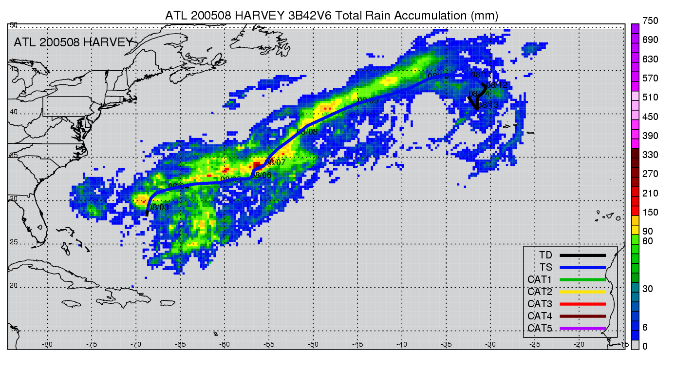 | 8 | 200508 | HARVEY | 20050803 - 20050808 | 994 | 55 | 18 | 182 | snapshots | rain accumulation |