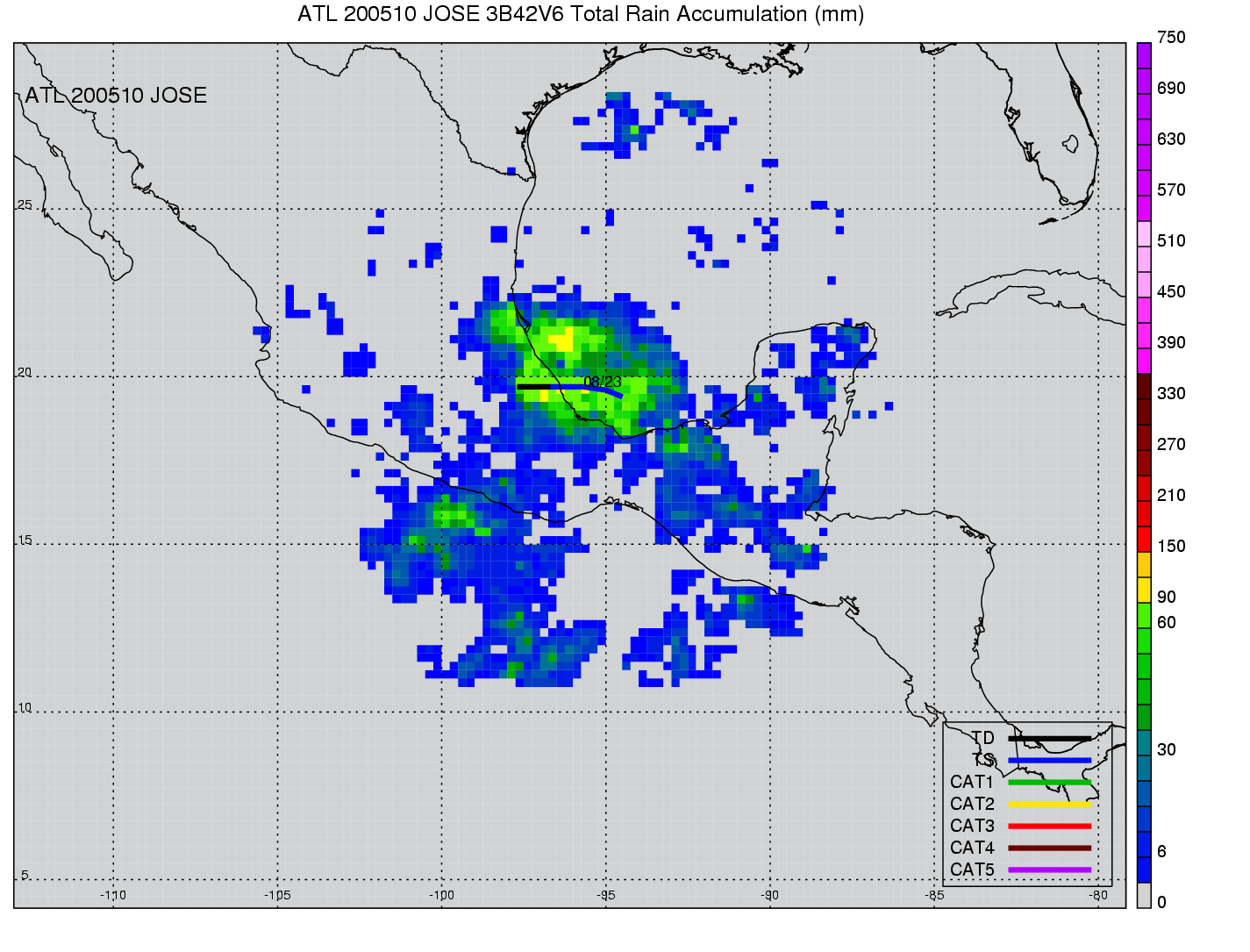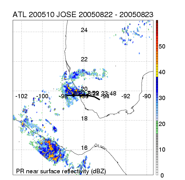 | 10 | 200510 | JOSE | 20050822 - 20050823 | 1001 | 45 | 2 | 23 | snapshots | rain accumulation |