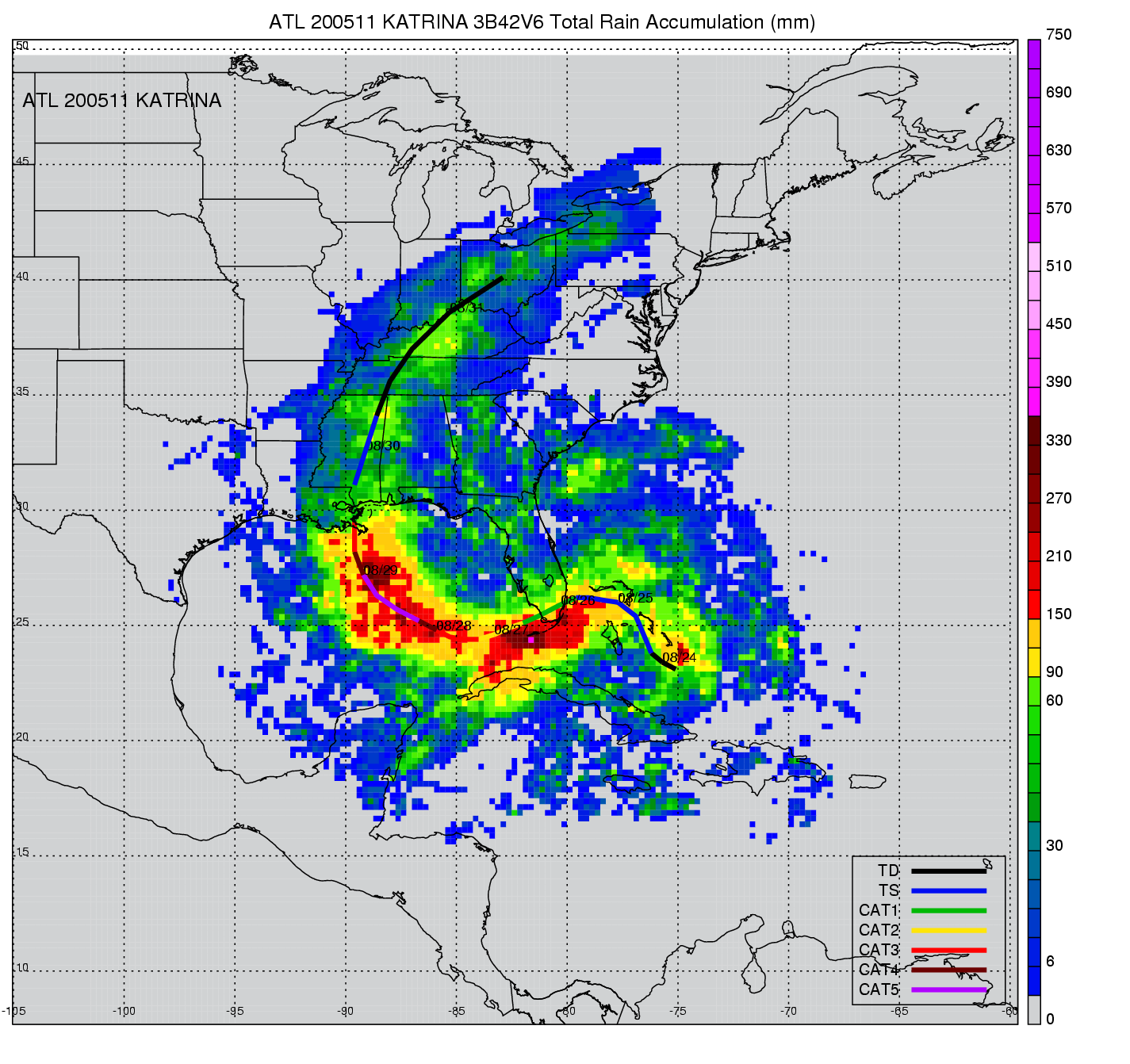 | 11 | 200511 | KATRINA | 20050823 - 20050830 | 902 | 150 | 17 | 195 | snapshots | rain accumulation |