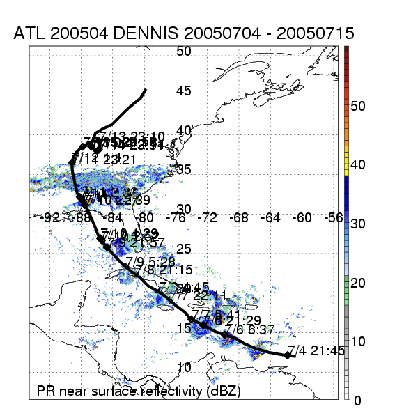 | 4 | 200504 | DENNIS | 20050704 - 20050715 | 930 | 130 | 24 | 167 | snapshots | rain accumulation |