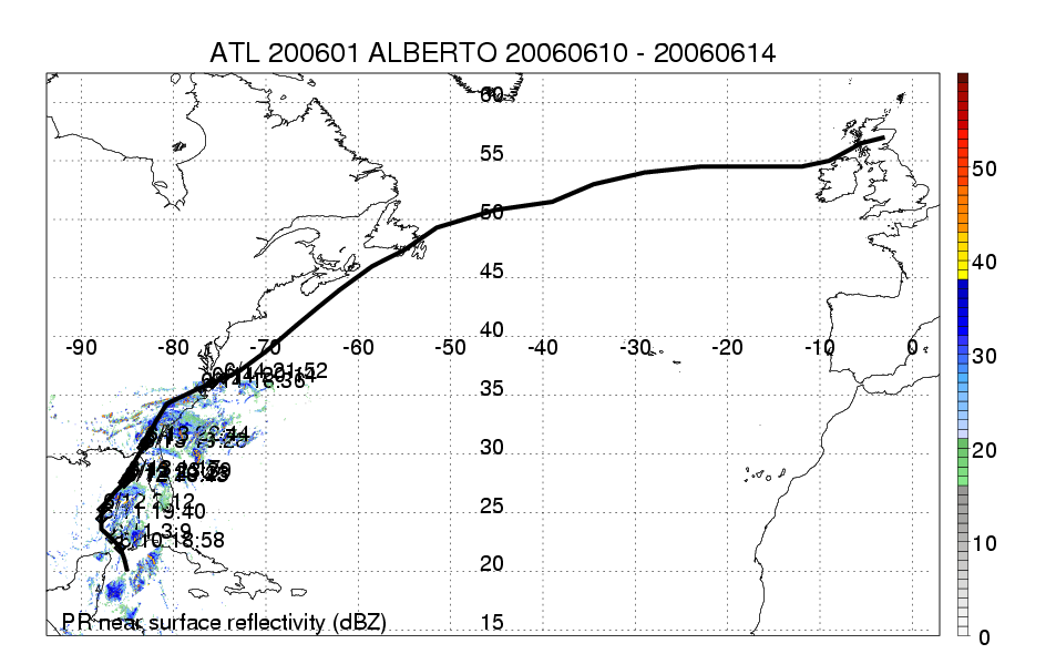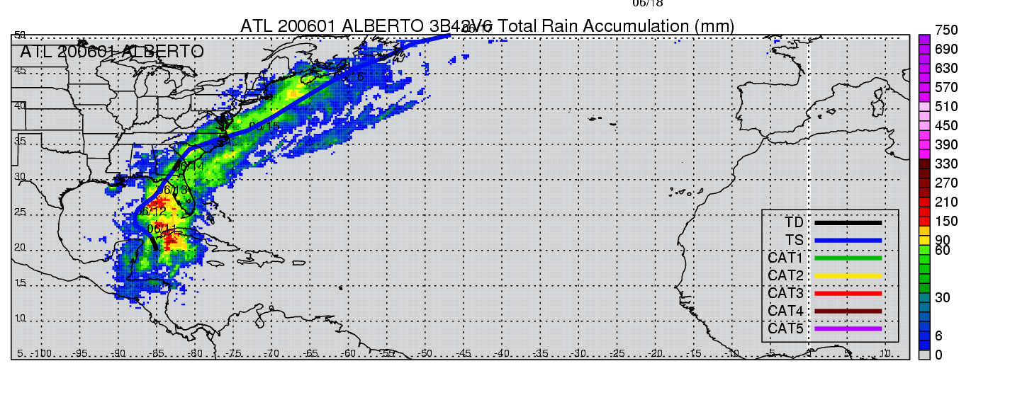 | 1 | 200601 | ALBERTO | 20060610 - 20060614 | 969 | 60 | 14 | 84 | snapshots | rain accumulation |