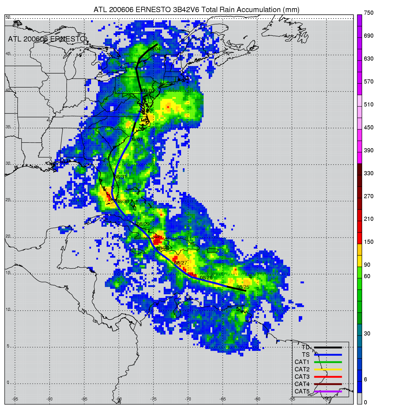 | 6 | 200606 | ERNESTO | 20060826 - 20060902 | 985 | 65 | 19 | 115 | snapshots | rain accumulation |