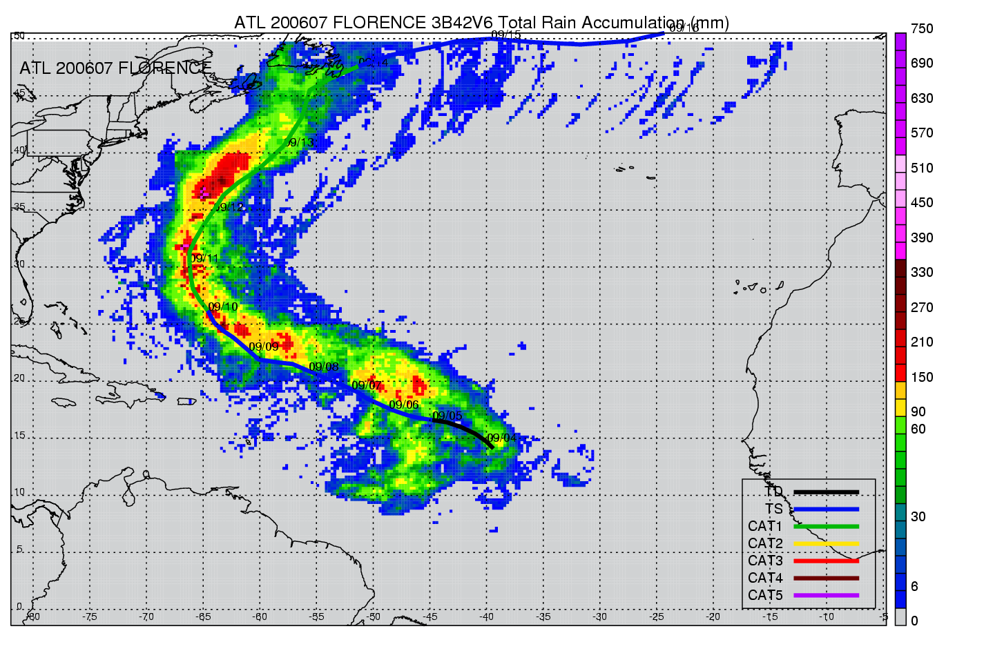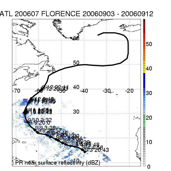 | 7 | 200607 | FLORENCE | 20060903 - 20060912 | 963 | 80 | 24 | 210 | snapshots | rain accumulation |