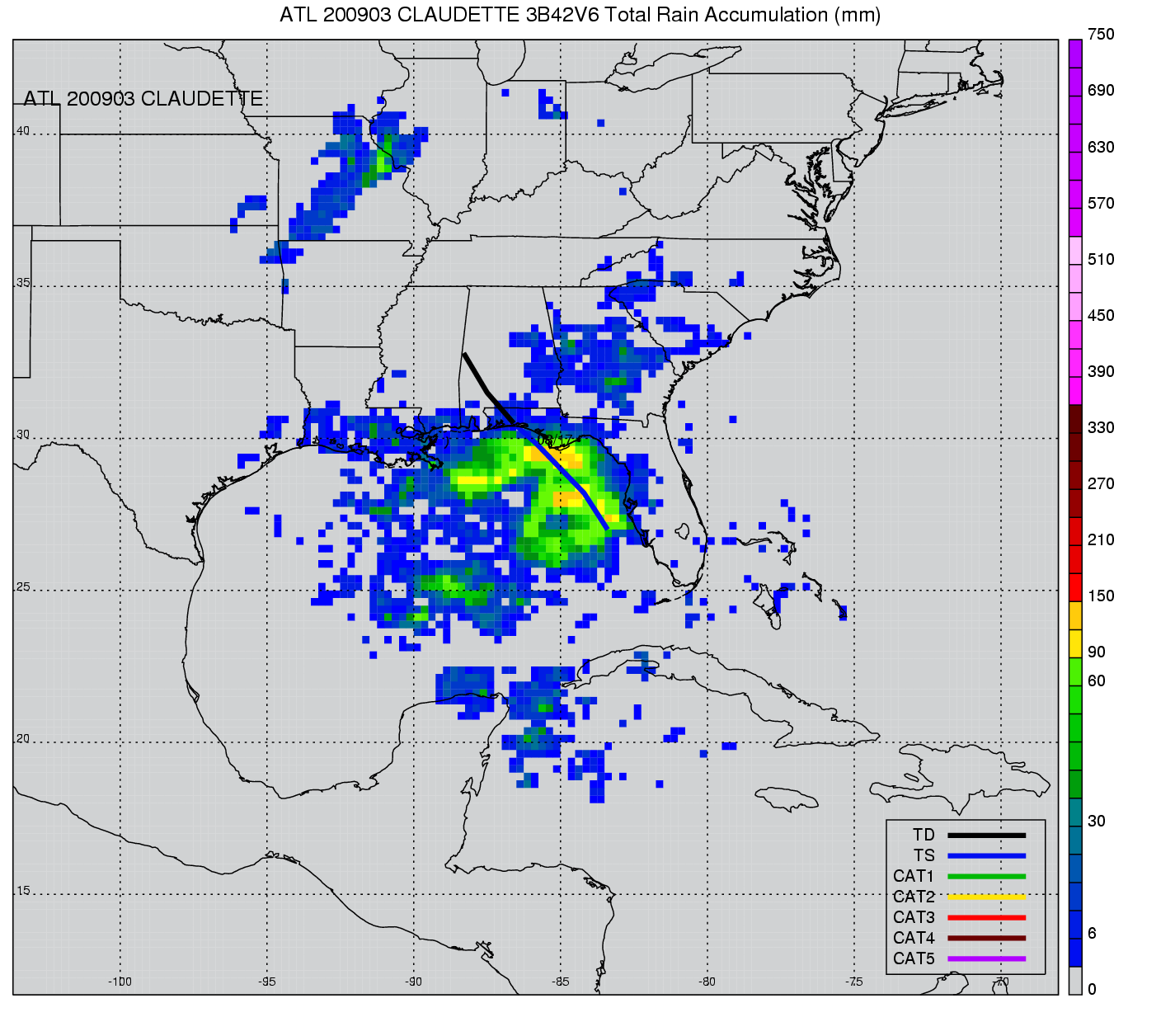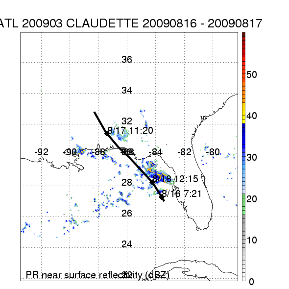 | 3 | 200903 | CLAUDETTE | 20090816 - 20090817 | 1005 | 50 | 4 | 26 | snapshots | rain accumulation |