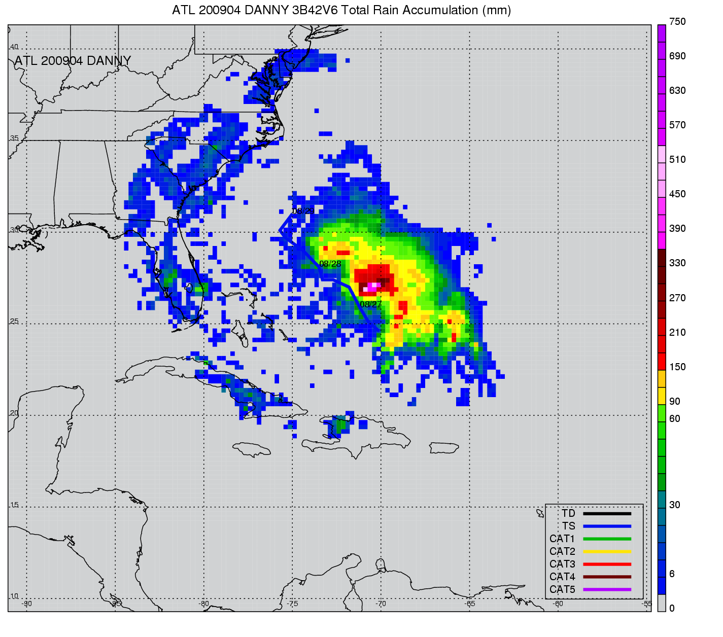 | 4 | 200904 | DANNY | 20090827 - 20090828 | 1006 | 50 | 5 | 52 | snapshots | rain accumulation |