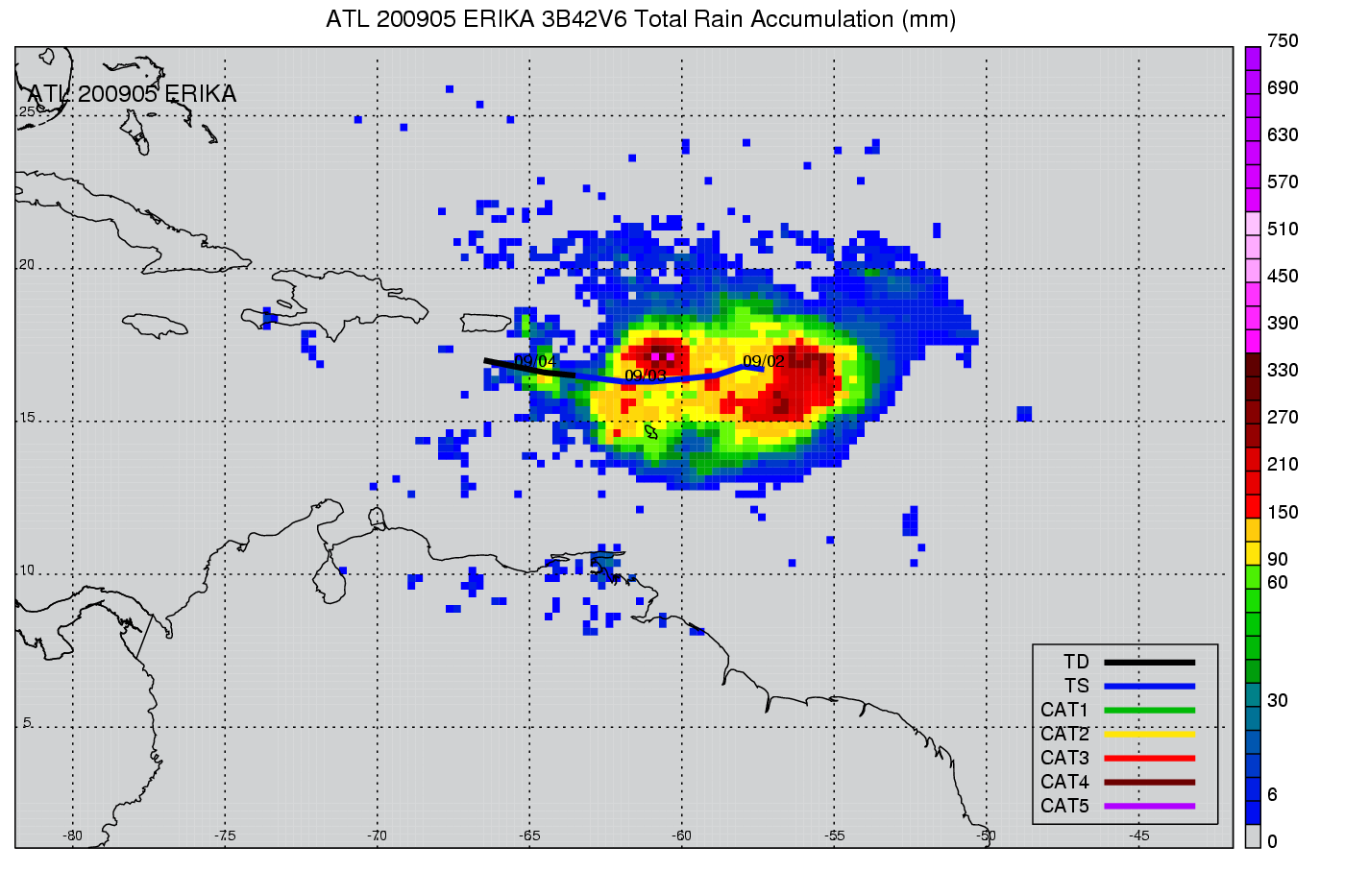 | 5 | 200905 | ERIKA | 20090901 - 20090904 | 1004 | 45 | 5 | 44 | snapshots | rain accumulation |