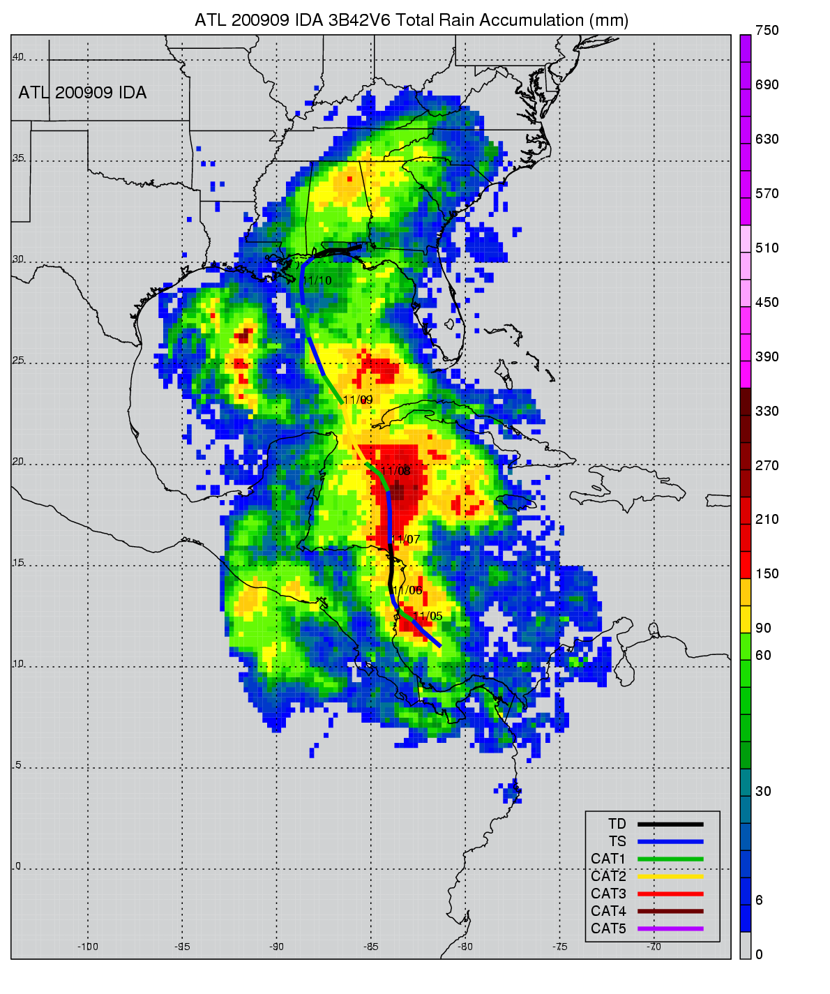 | 9 | 200909 | IDA | 20091104 - 20091110 | 975 | 90 | 15 | 108 | snapshots | rain accumulation |