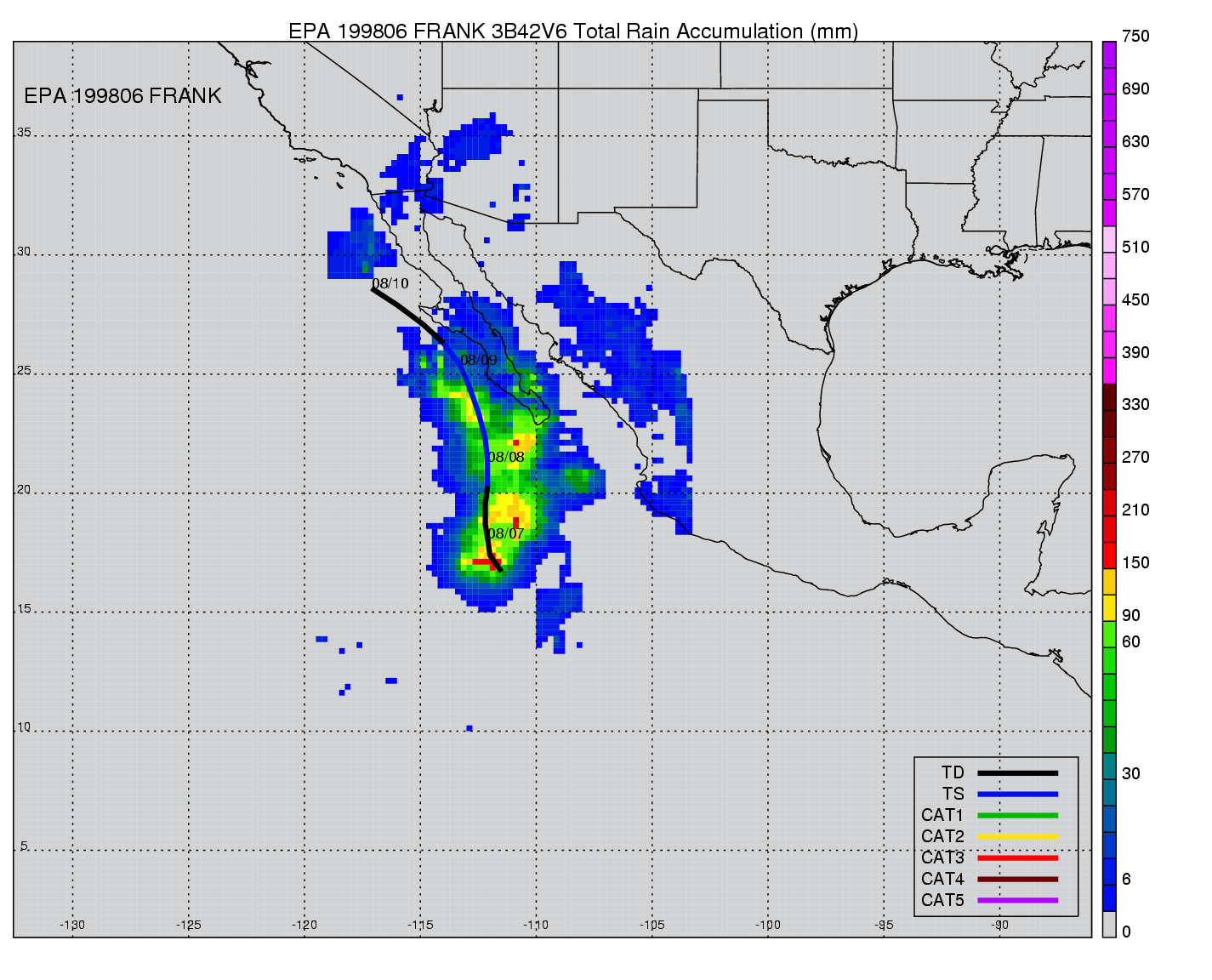 | 6 | 199806 | FRANK | 19980806 - 19980809 | 1001 | 40 | 7 | 59 | snapshots | rain accumulation |