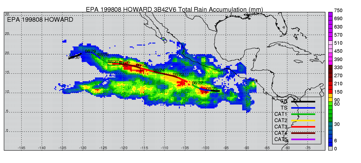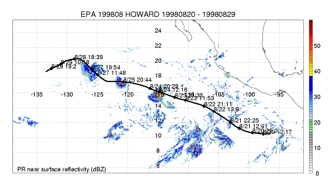 | 8 | 199808 | HOWARD | 19980820 - 19980829 | 932 | 130 | 16 | 113 | snapshots | rain accumulation |