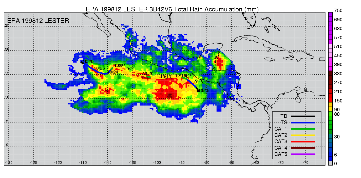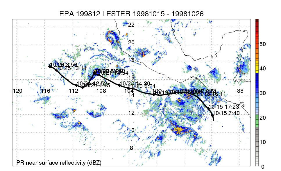 | 12 | 199812 | LESTER | 19981015 - 19981026 | 965 | 100 | 19 | 130 | snapshots | rain accumulation |