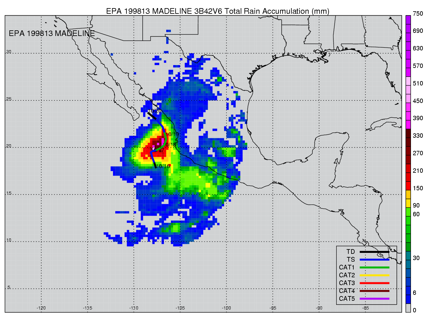 | 13 | 199813 | MADELINE | 19981016 - 19981019 | 979 | 75 | 6 | 19 | snapshots | rain accumulation |