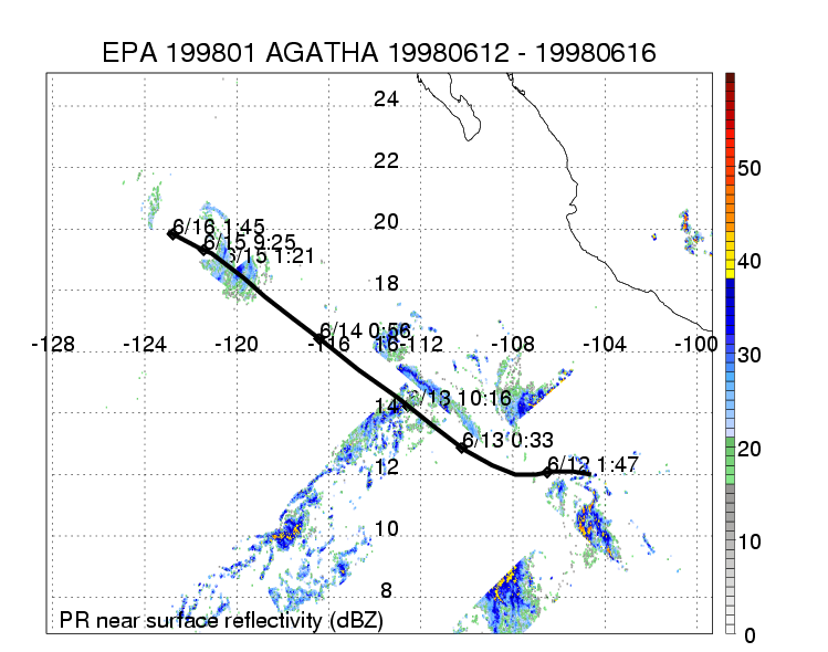 | 1 | 199801 | AGATHA | 19980612 - 19980616 | 993 | 55 | 9 | 33 | snapshots | rain accumulation |