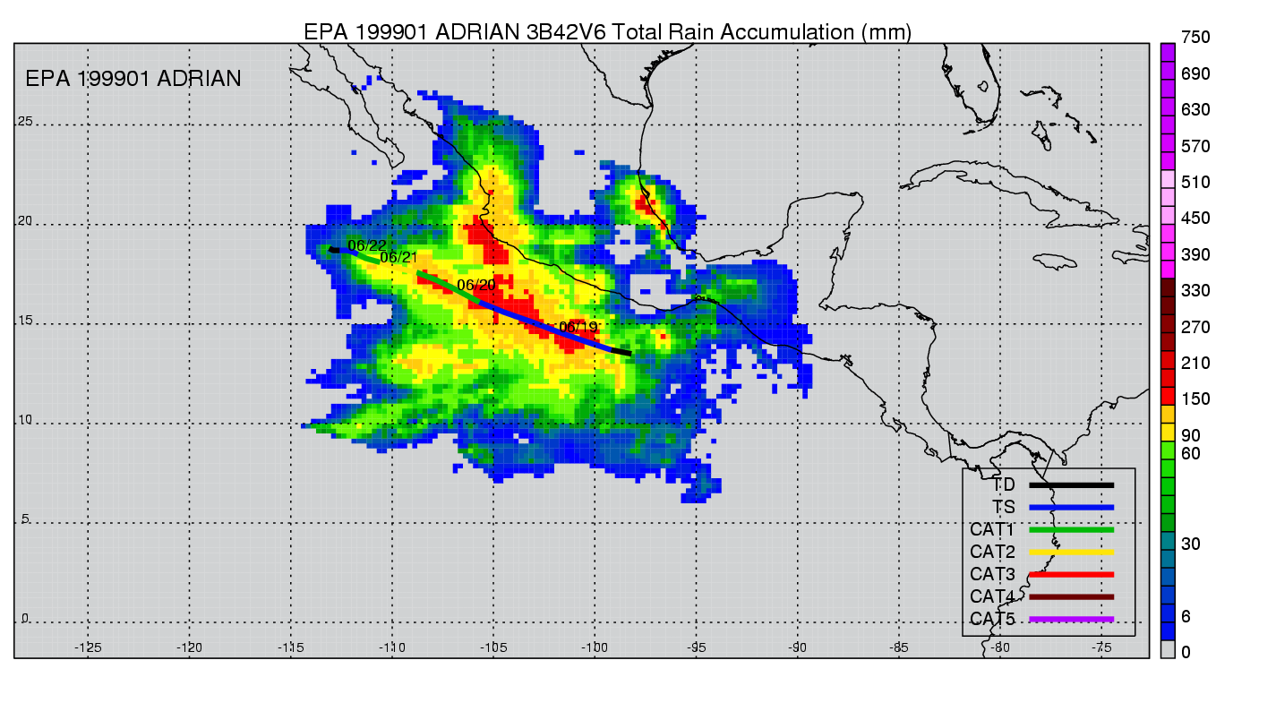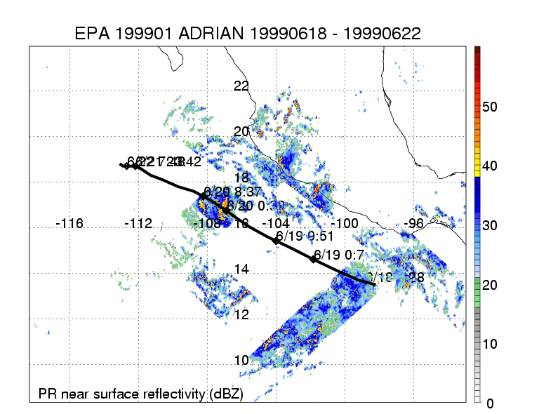 | 1 | 199901 | ADRIAN | 19990618 - 19990622 | 973 | 85 | 9 | 55 | snapshots | rain accumulation |