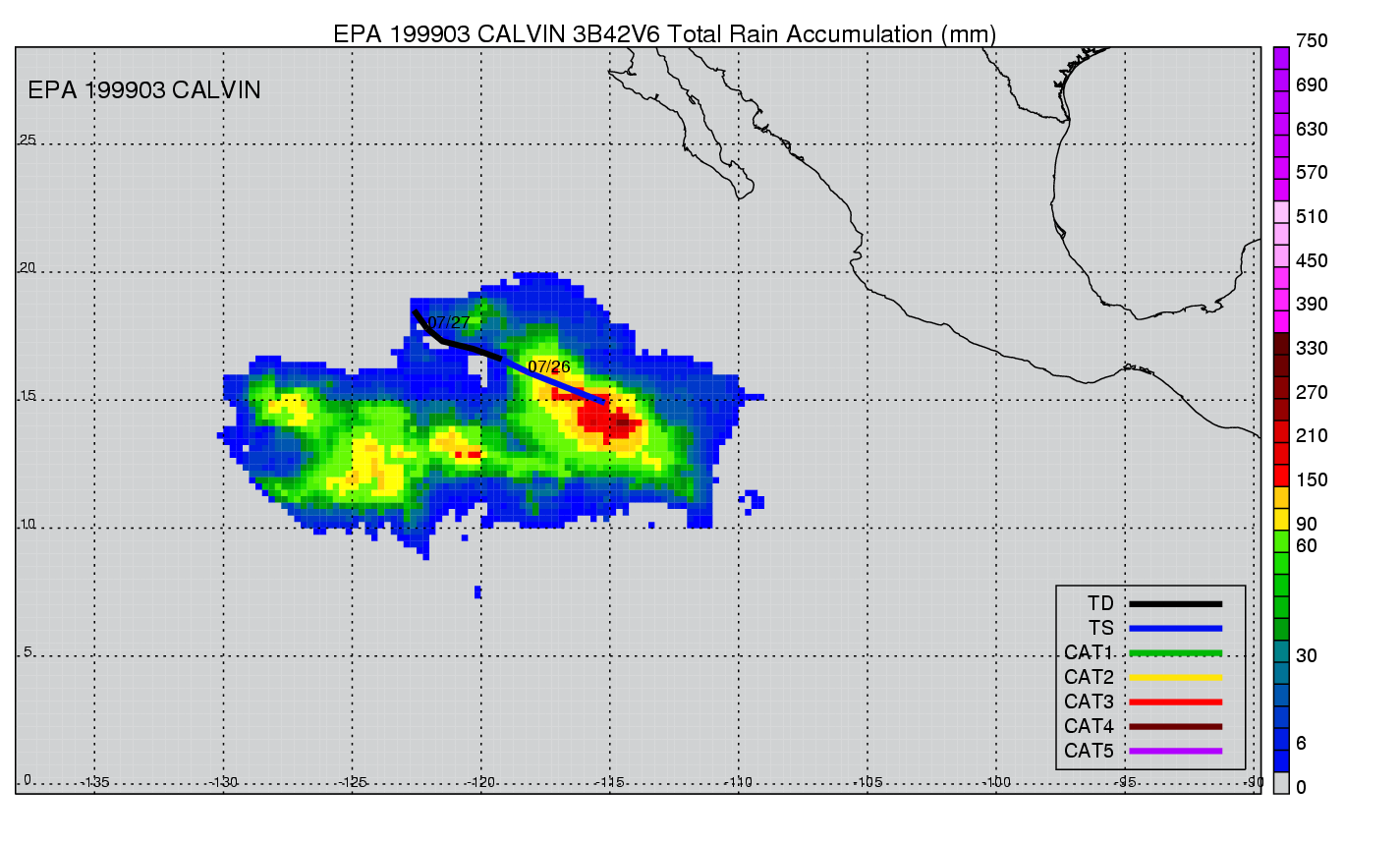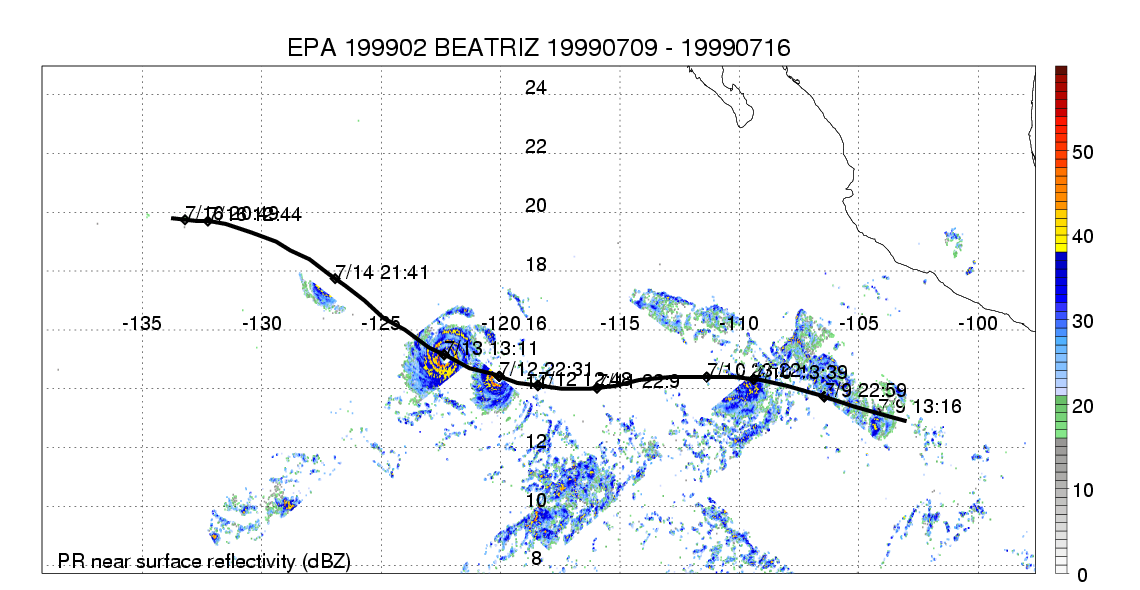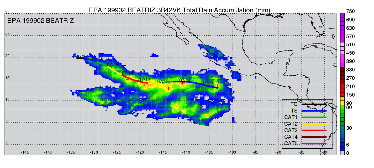 | 2 | 199902 | BEATRIZ | 19990709 - 19990716 | 955 | 105 | 11 | 69 | snapshots | rain accumulation |