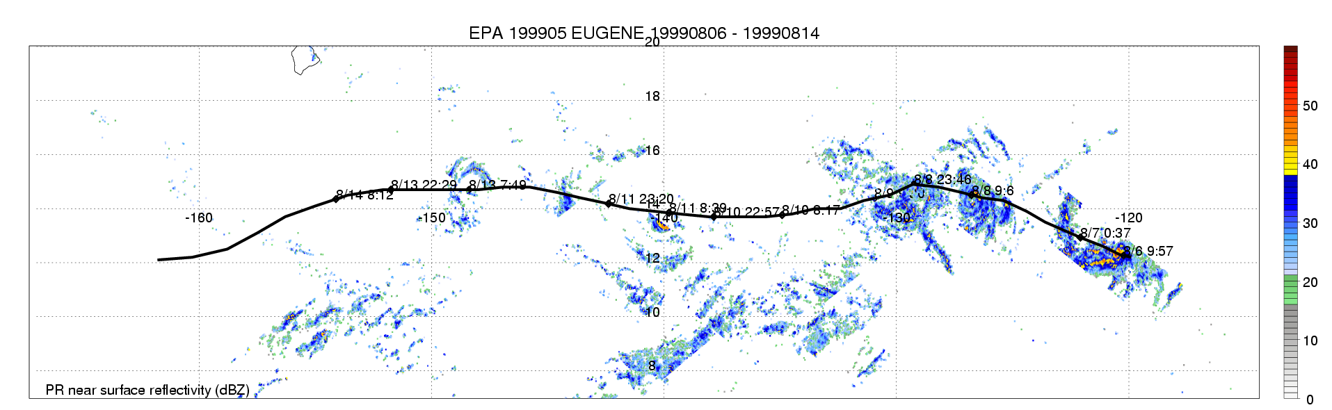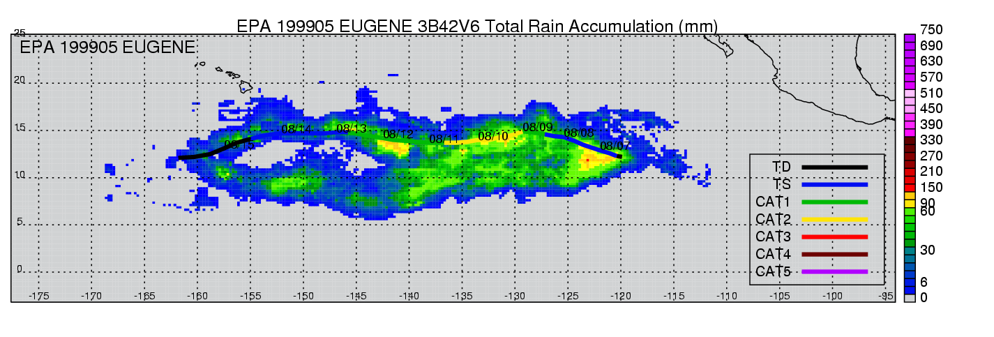 | 5 | 199905 | EUGENE | 19990806 - 19990814 | 964 | 95 | 13 | 117 | snapshots | rain accumulation |