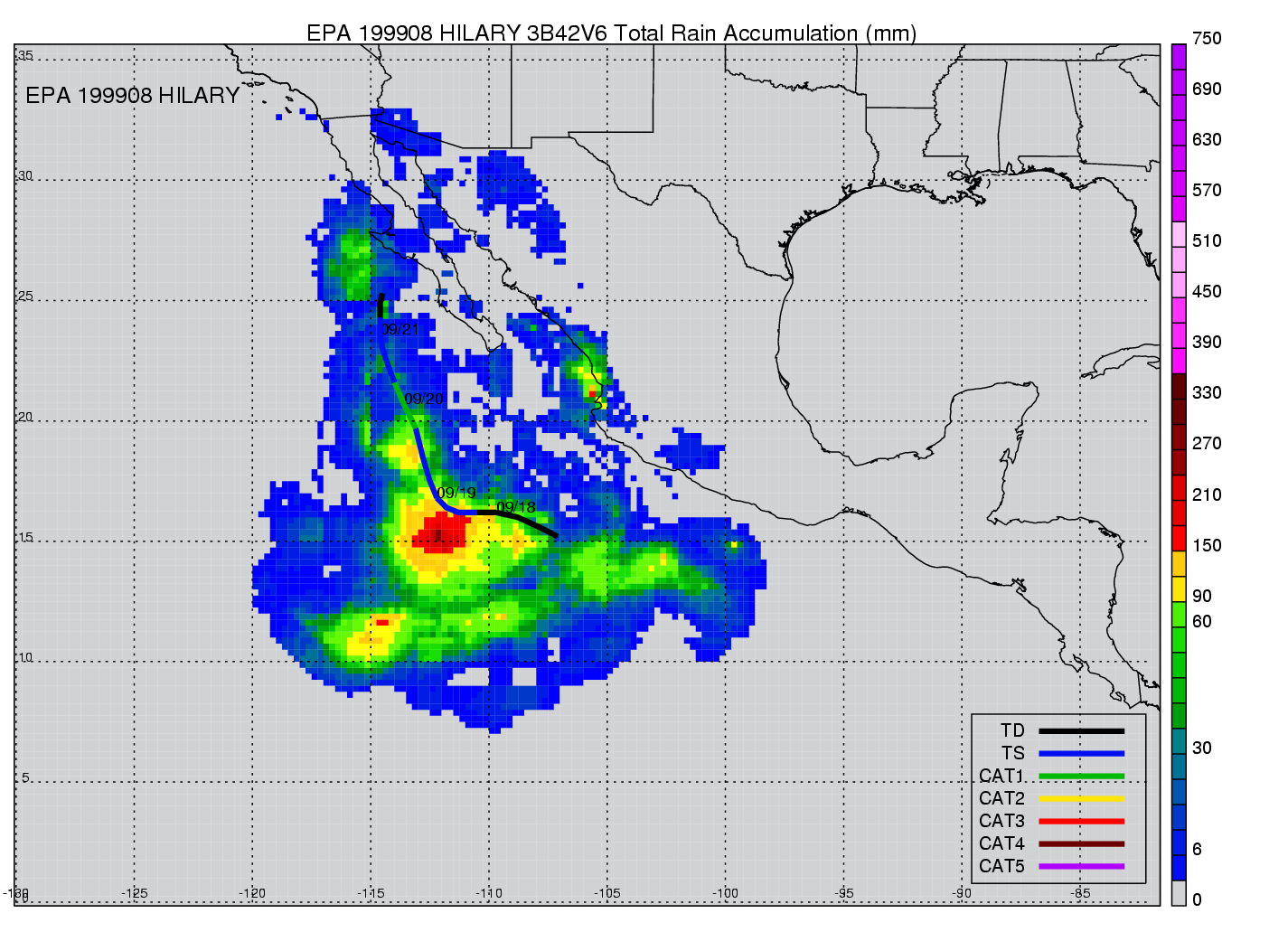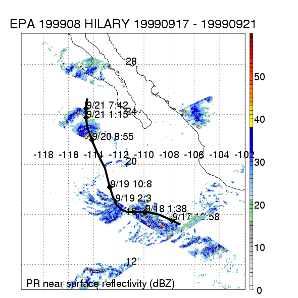 | 8 | 199908 | HILARY | 19990917 - 19990921 | 987 | 65 | 8 | 72 | snapshots | rain accumulation |