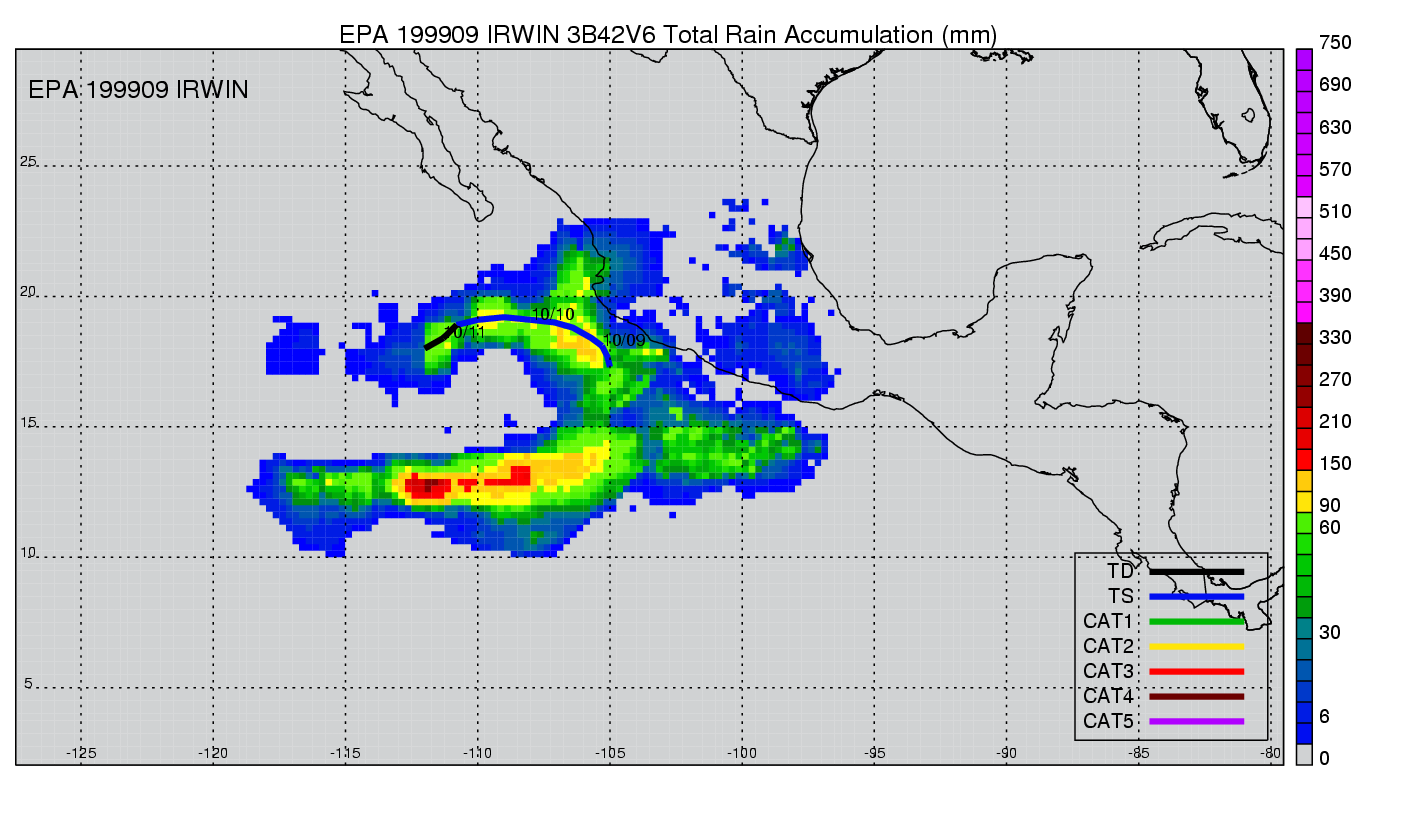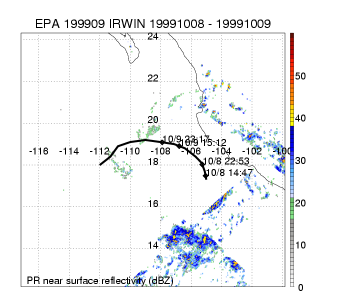 | 9 | 199909 | IRWIN | 19991008 - 19991010 | 996 | 50 | 6 | 50 | snapshots | rain accumulation |