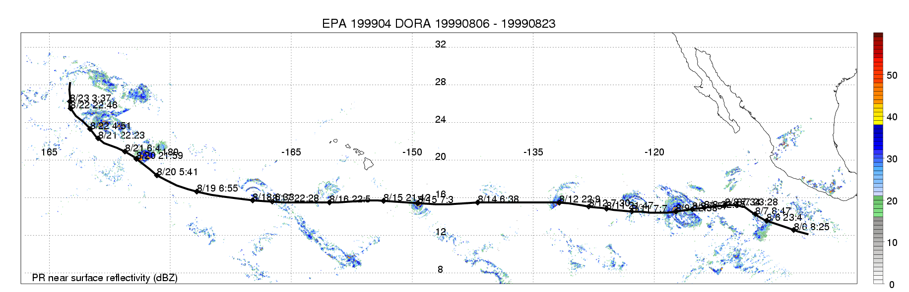 | 4 | 199904 | DORA | 19990806 - 19990823 | -9999999 | 120 | 26 | 206 | snapshots | rain accumulation |