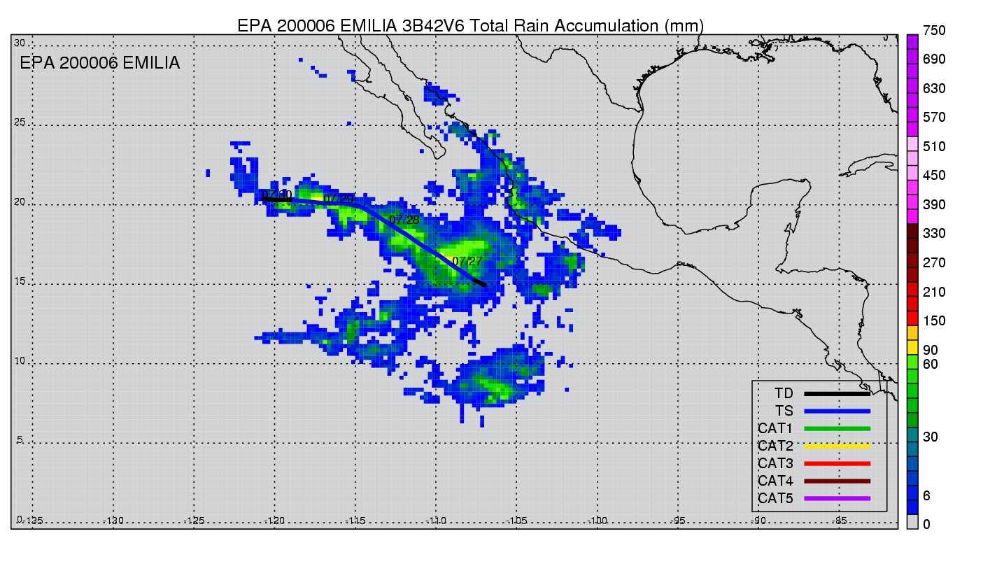 | 6 | 200006 | EMILIA | 20000726 - 20000729 | 994 | 55 | 8 | 25 | snapshots | rain accumulation |