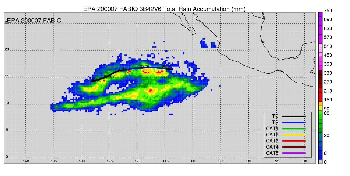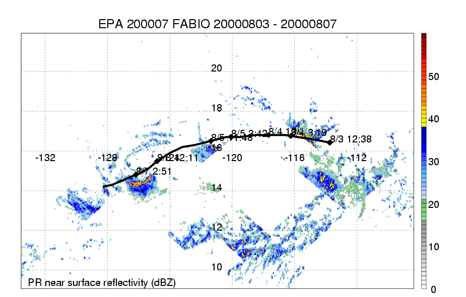 | 7 | 200007 | FABIO | 20000803 - 20000807 | 1000 | 45 | 7 | 82 | snapshots | rain accumulation |