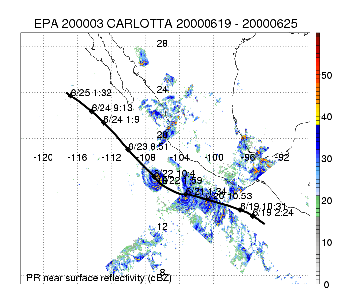 | 3 | 200003 | CARLOTTA | 20000619 - 20000625 | 932 | 135 | 11 | 64 | snapshots | rain accumulation |