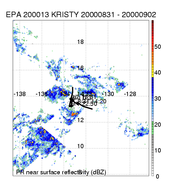 | 12 | 200013 | KRISTY | 20000831 - 20000902 | 1004 | 35 | 4 | 42 | snapshots | rain accumulation |