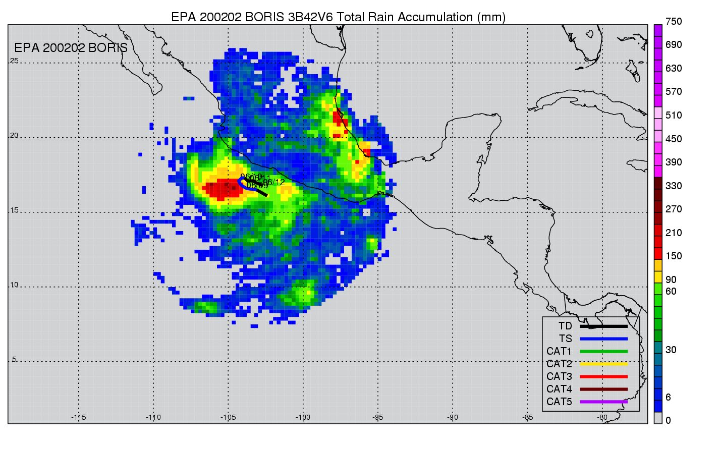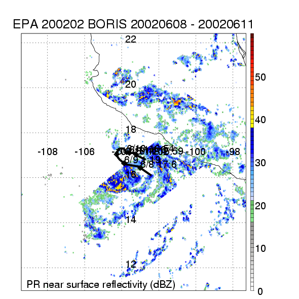 | 2 | 200202 | BORIS | 20020608 - 20020611 | 997 | 50 | 6 | 32 | snapshots | rain accumulation |